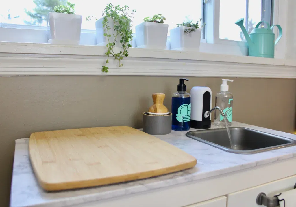 Cái này dựa trên ý tưởng tuyệt vời tại: https://theorganizedmomlife.com/functional-toddler-kitchen/