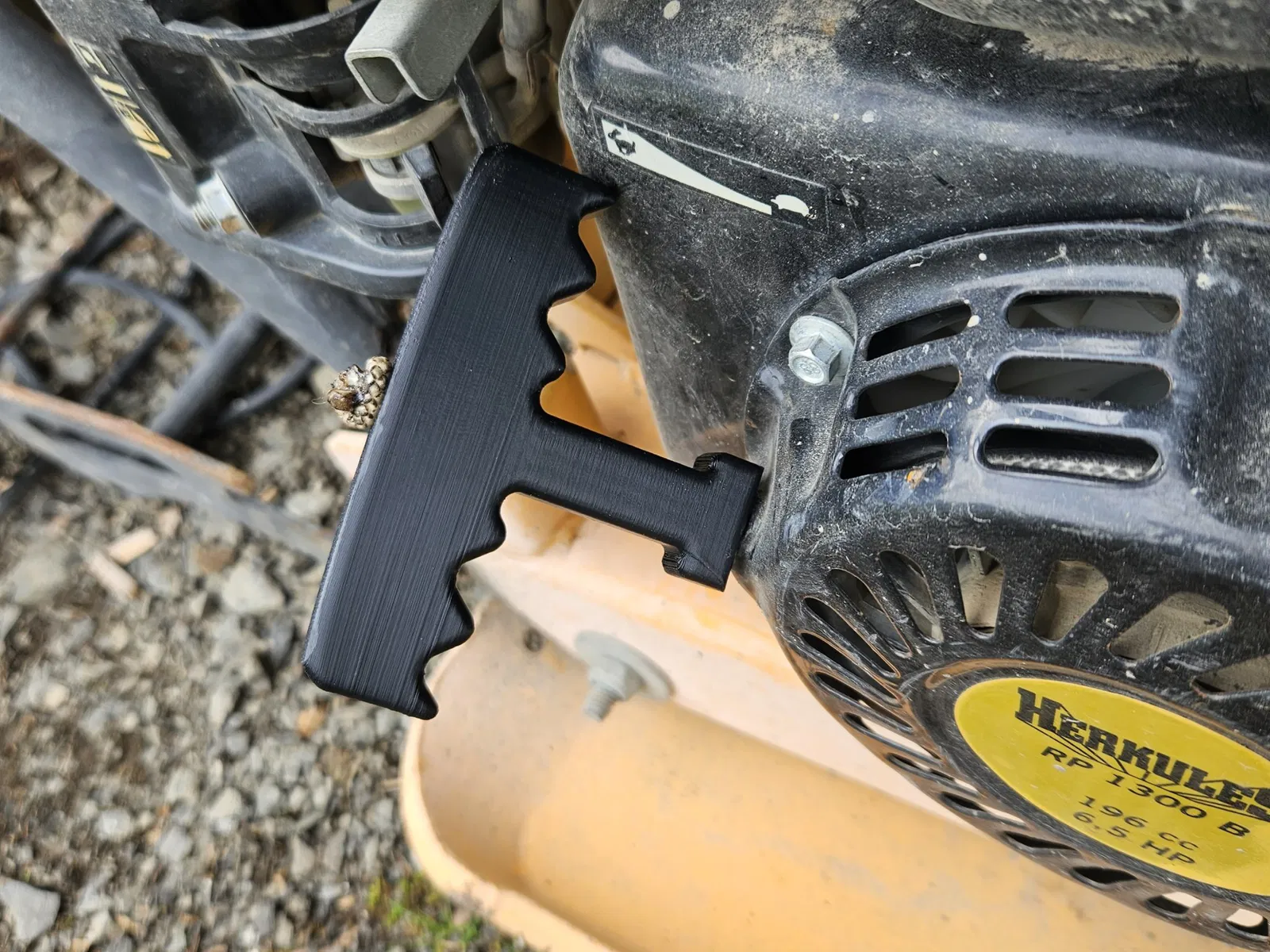 Được nghĩ đến như một phụ tùng thay thế nhanh chóng cho một tay cầm bị vỡ của một bộ khởi động dây kéo trên một máy rung. Tất nhiên cũng dành cho các máy khác với dây 4mm. Được in bằng ABS, 3 độ dày tường và 30% độ đầy. Bền và thực hiện tốt công việc của nó.