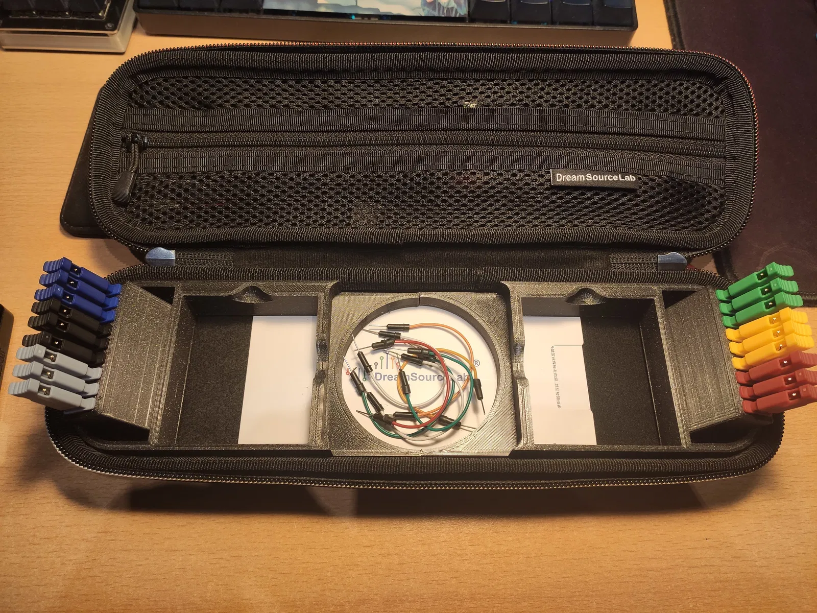 Chèn trường hợp đơn giản để thay thế các miếng bìa cứng đi kèm với nó. Cung cấp các ngăn nhỏ để lưu trữ các mặt hàng bổ sung như cáp nhảy và hộp cho các đầu dò đi kèm.