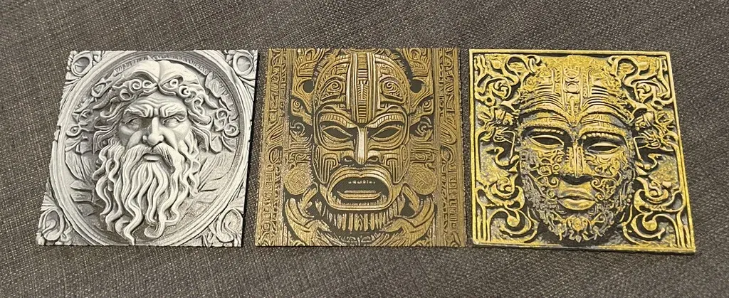 Khắc trông giống kim loại - in hueforge, đi cùng với bản in Zeus và gỗ nếu bạn muốn có một bộ sưu tập dễ thương.