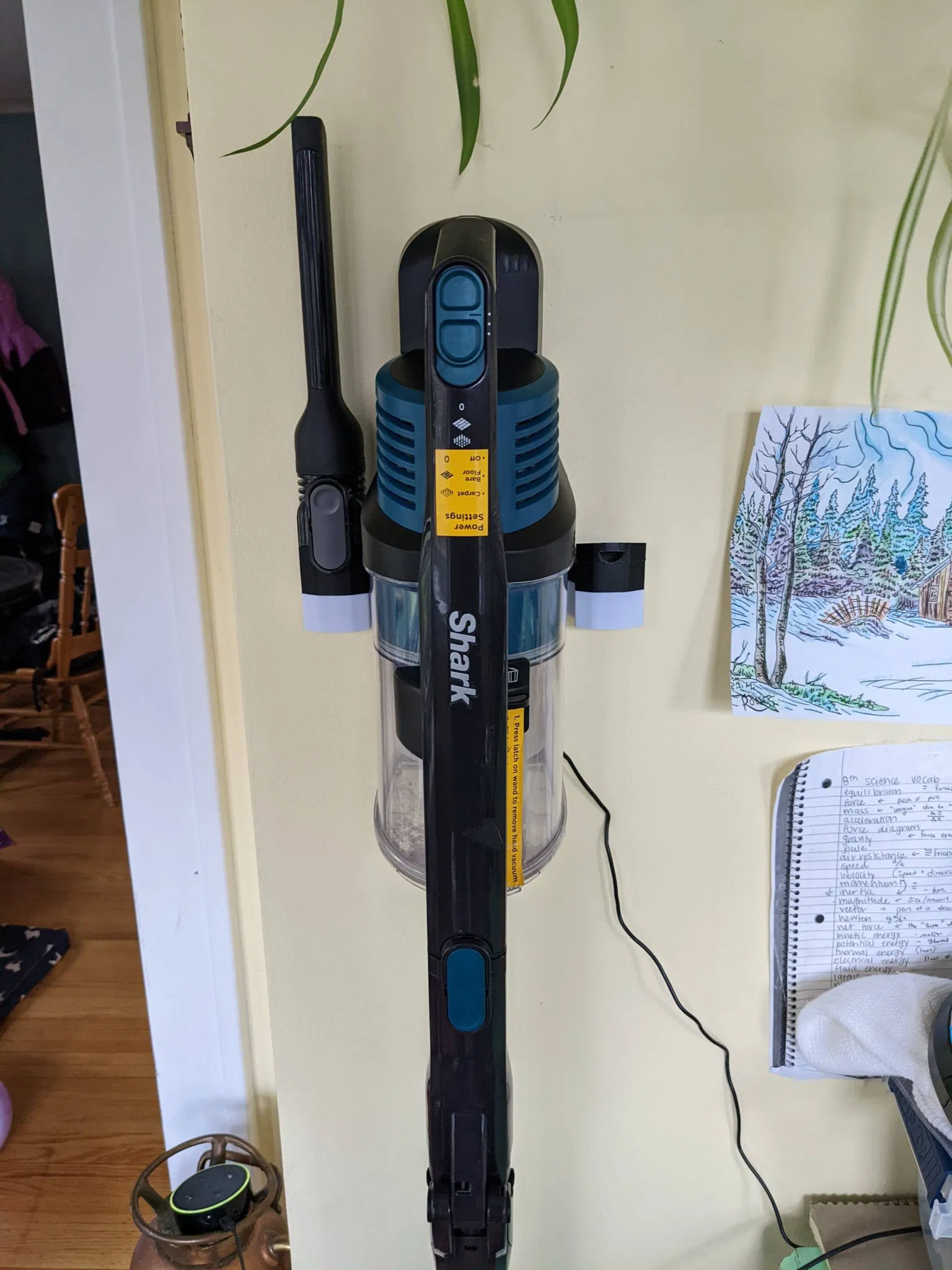 Trong khi có một số giá treo tường cho máy hút bụi Shark stick, Rocket Pro dường như không phải là một trong số đó. Máy hút bụi này có một cái móc mỏng phía sau bình chứa, rõ ràng là để làm điểm treo, vì vậy từ đây tôi đã phân tích ngược thành phần treo tường mà nó chèn vào. Tôi cũng đã kết hợp một số giá đỡ công cụ được tạo ra bởi Spongecretin tìm thấy ở đây: