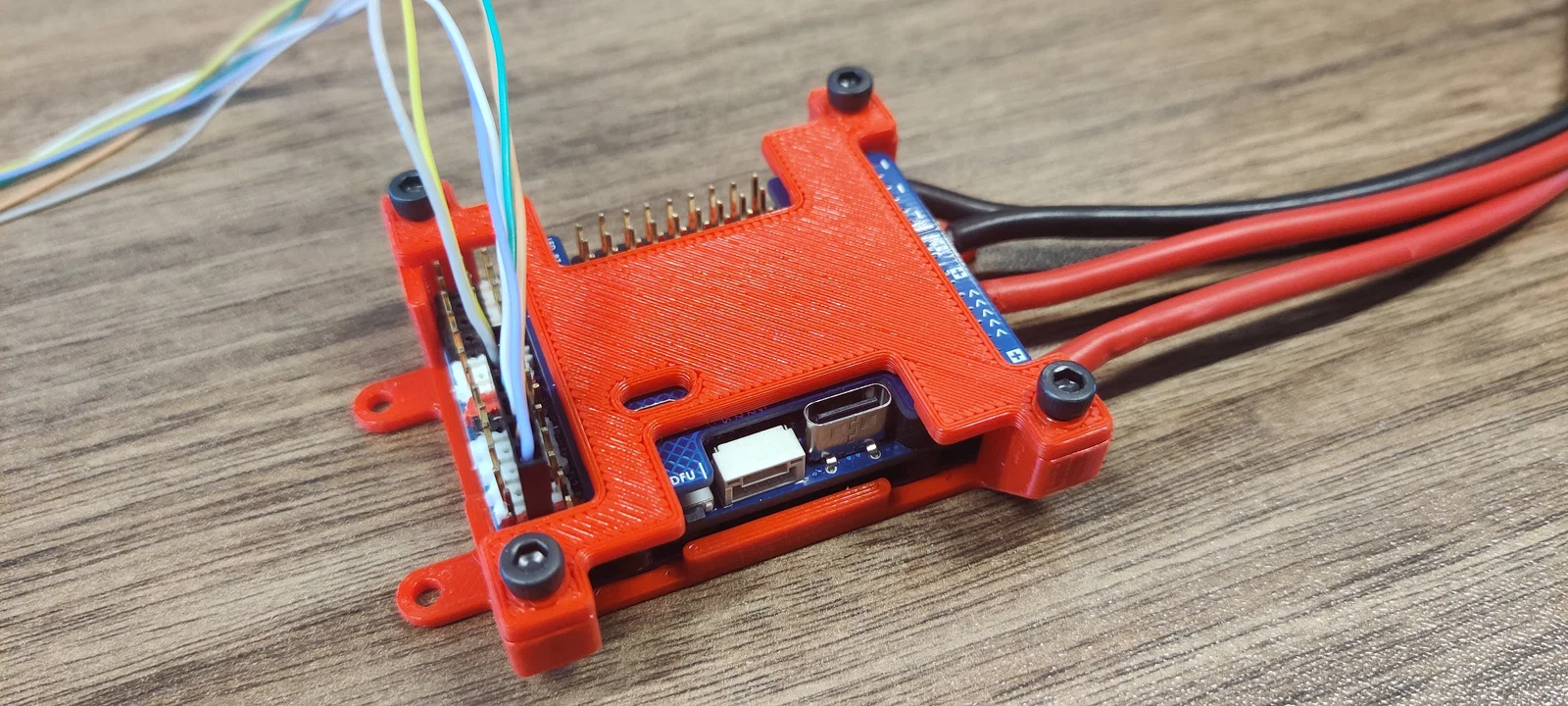 Do tui tìm không có cái bracket nào đủ cứng cáp mà lại không bị vướng dây á, nên tui tự thiết kế một cái.