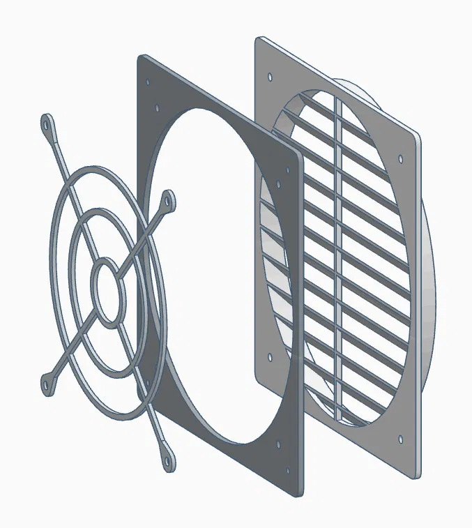 Cập nhật 12.02.24: Đã chèn phiên bản mới của bộ che quạt 200mm (v1.2). Các lỗ giữa bộ che và giá đỡ khớp với nhau.