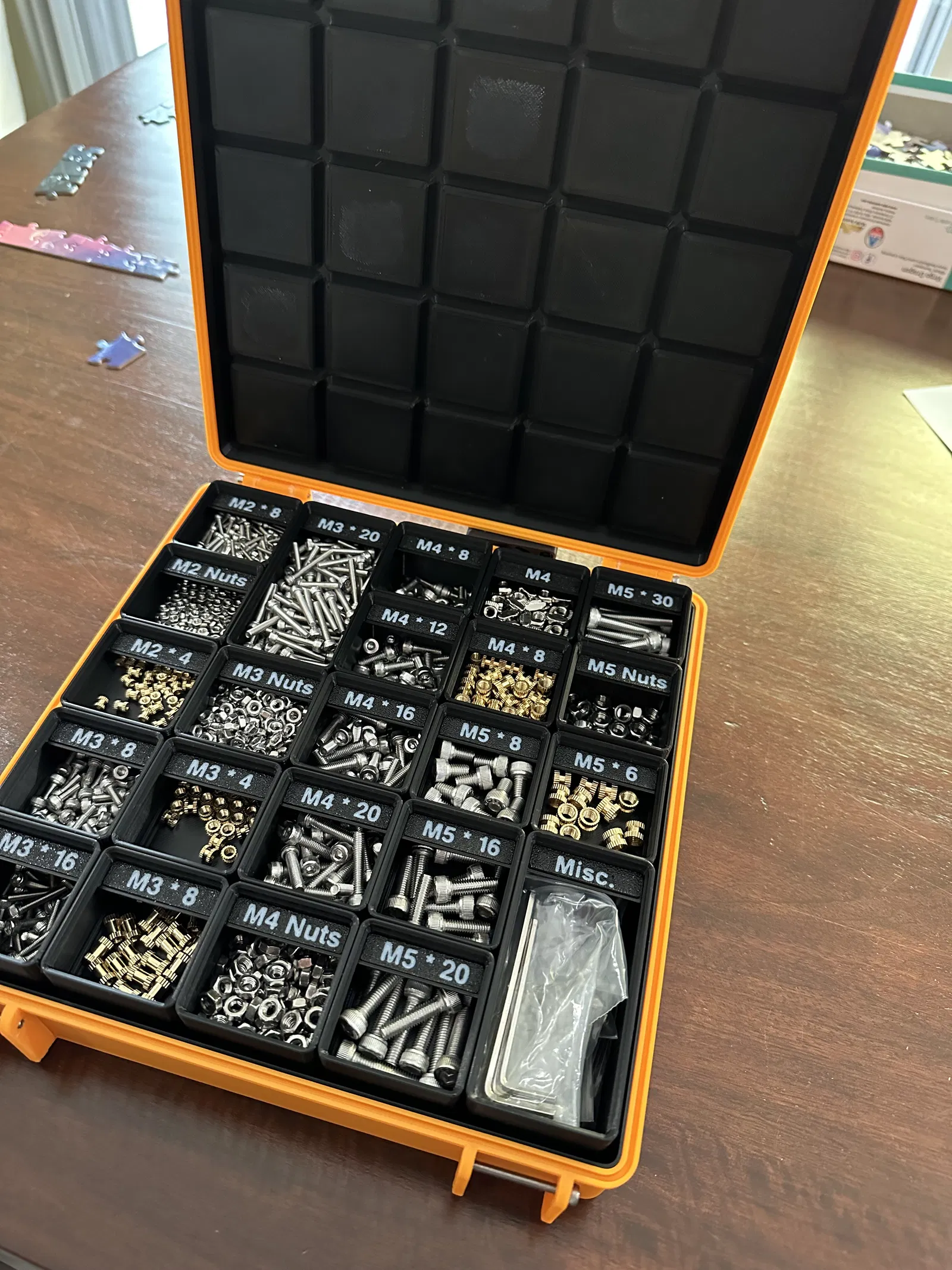 Tui cần một cách để sắp xếp hết mấy con ốc, đai ốc và mấy cái insert bằng đồng của tui lại.