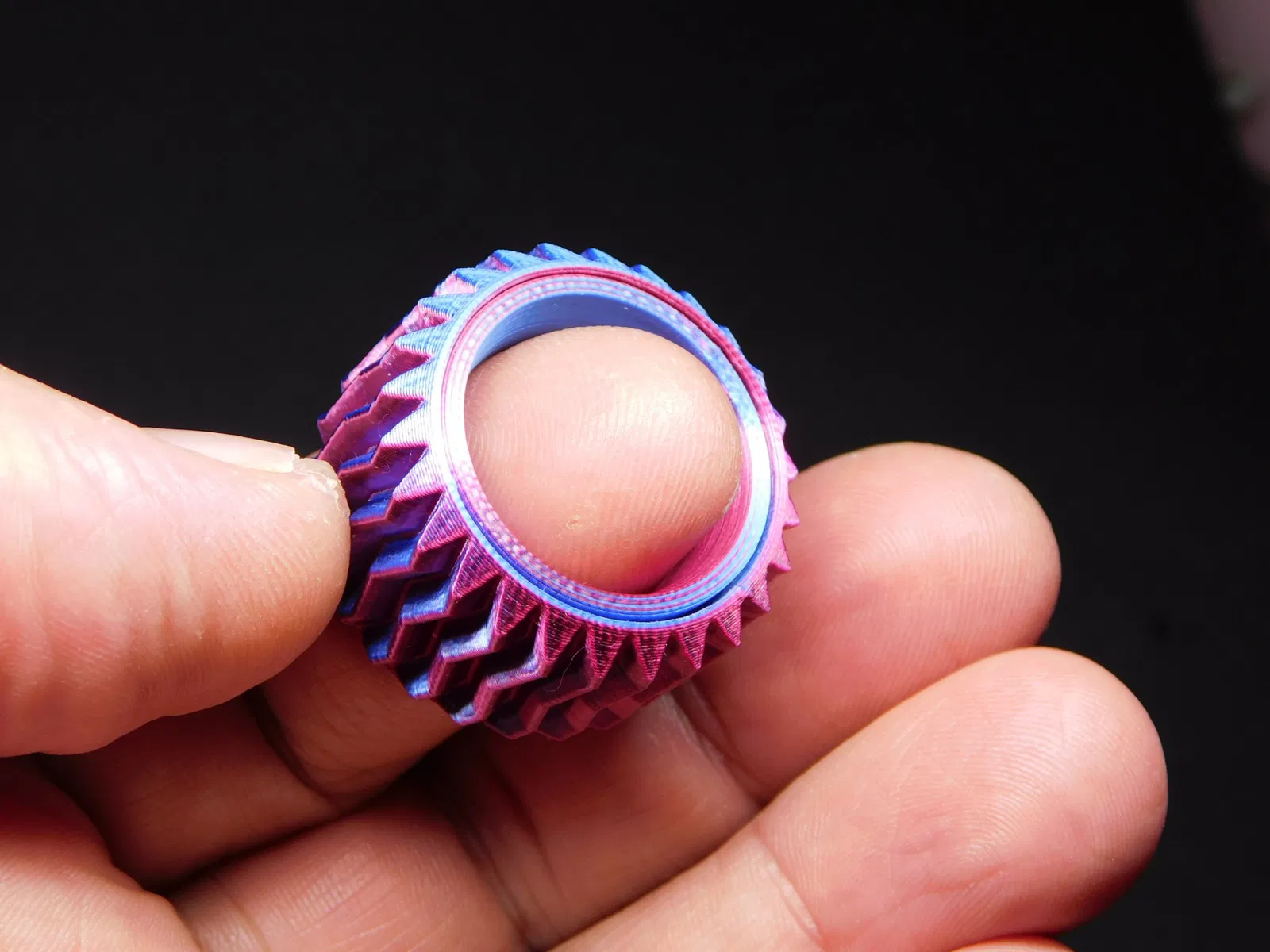 Nhẫn thư giãn với bánh răng, in tại chỗ Nếu nhẫn khó đeo, hãy cho nó vào nước, đẩy nó để xoay theo mọi hướng, điều đó đã giúp tôi rất nhiều. Trong g-code, một vòng cổ được đặt xung quanh để mô hình không bị rời ra - tôi khuyên bạn nên thêm một vòng cổ vì phần ngoài của nhẫn chỉ có 2 chu vi. Tôi đã tạo ra nhẫn với ba kích thước - với lỗ 19, 18, 17 mm #### Các spinner bánh răng tương tự khác có thể được tìm thấy trong bộ sưu tập spinner của tôi: #### https://www.printables.com/cs/@ThorinOakenshield/collections/388544?o=newest