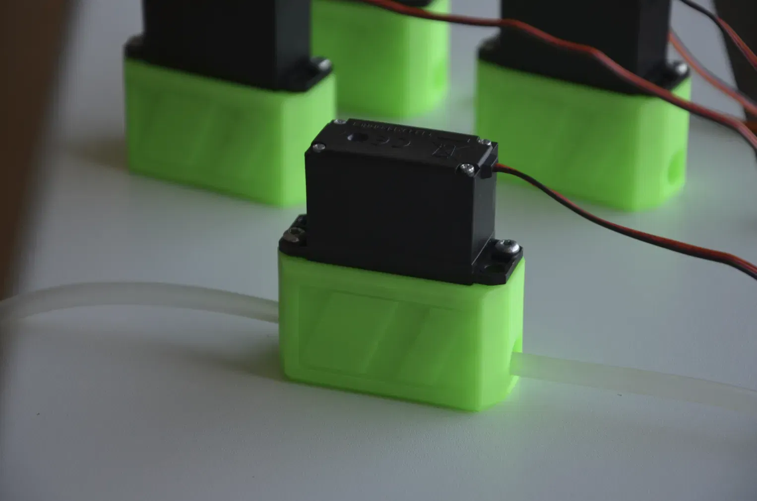 Khối lượng chảy trong ống bằng cách siết chặt nó bằng một servo tiêu chuẩn. Thích hợp cho các ống có đường kính ngoài từ 6mm đến 8mm.