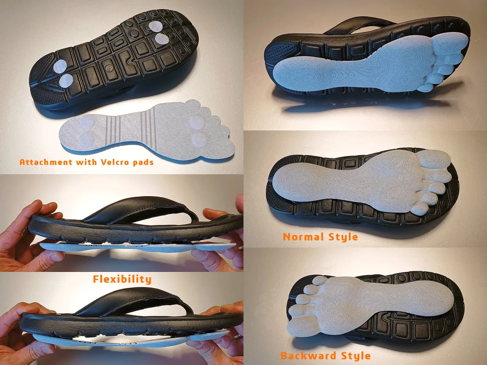 In dấu chân vui vẻ… Gắn dấu chân giả này vào dép xỏ ngón hoặc sandal của bạn (tốt nhất là với đế phẳng) và khiến mọi người tin rằng bạn đi "ngược" trên bãi biển! Hoặc sử dụng chúng để tạo dấu chân hoàn hảo mà không làm chân bạn bị cát.