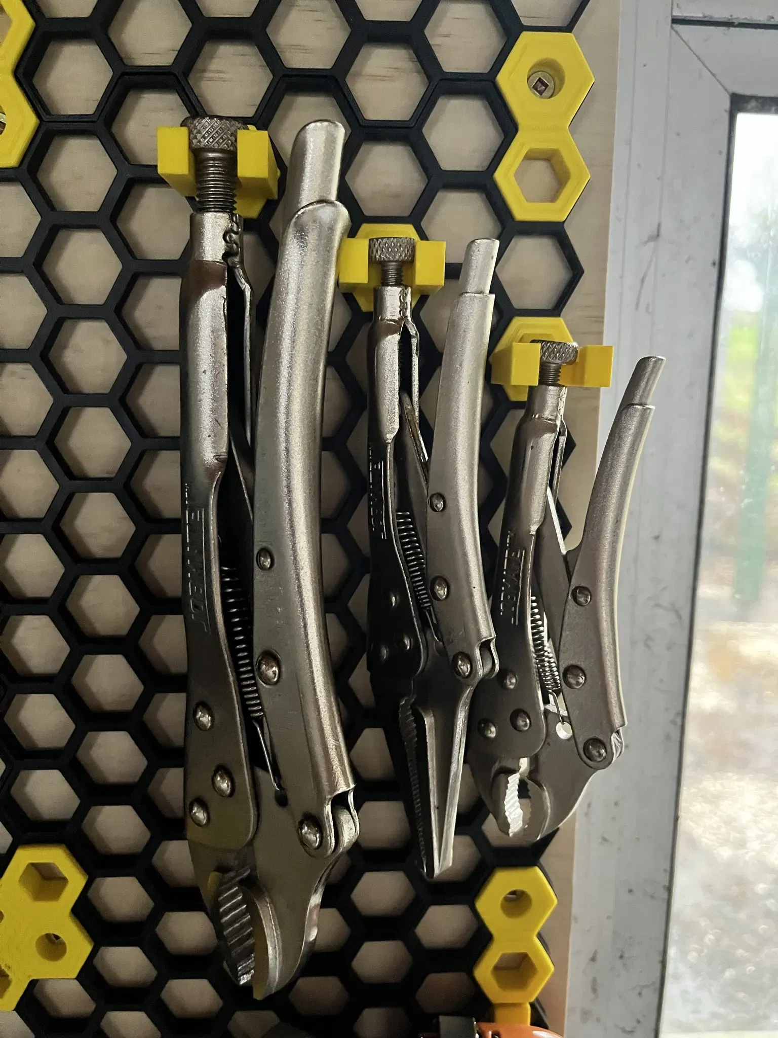 Giá đỡ kìm cho Tường Lưu Trữ Tổ Ong (HSW). Phiên bản lớn và nhỏ cho các kích thước khác nhau của kìm.