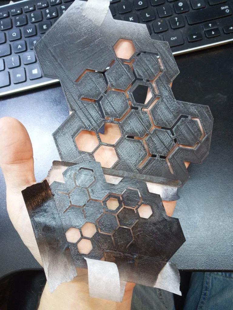 Đây là một stencil họa tiết lục giác đơn giản, có thể dùng để sơn xịt hoặc vẽ bằng airbrush. Nó rất linh hoạt vì nó mỏng, nhưng trong phần mềm cắt lớp (slicer) bạn có thể thay đổi tỷ lệ trên trục z để làm cho nó cứng hơn.