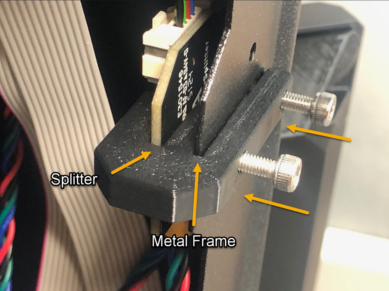 Thật không may, Bộ chia tín hiệu Splitter được gắn bằng hai kẹp, và bộ phận này không thể tháo rời.