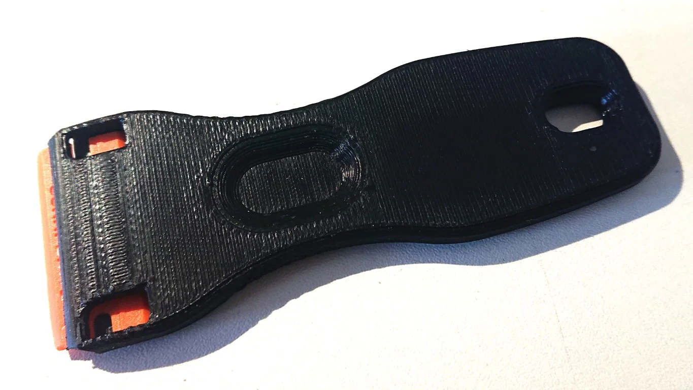 Tôi đã in bằng đầu phun 0.6mm và chiều cao lớp 0.3mm bằng ASA. 2 lớp chu vi và 3 lớp đáy, 4 lớp trên cùng và 15% mật độ ruột làm cho nó rất chắc chắn. Phần overhang cần có hỗ trợ; khi làm sạch phần hỗ trợ, hãy cẩn thận không cắt bỏ phần cam nhỏ(?) để giữ lưỡi dao. Ngoài ra còn có một phiên bản của mô hình với phần ôm hơn cho lưỡi dao cạo: vừa vặn hơn, nhưng cần làm sạch cẩn thận phần hỗ trợ.