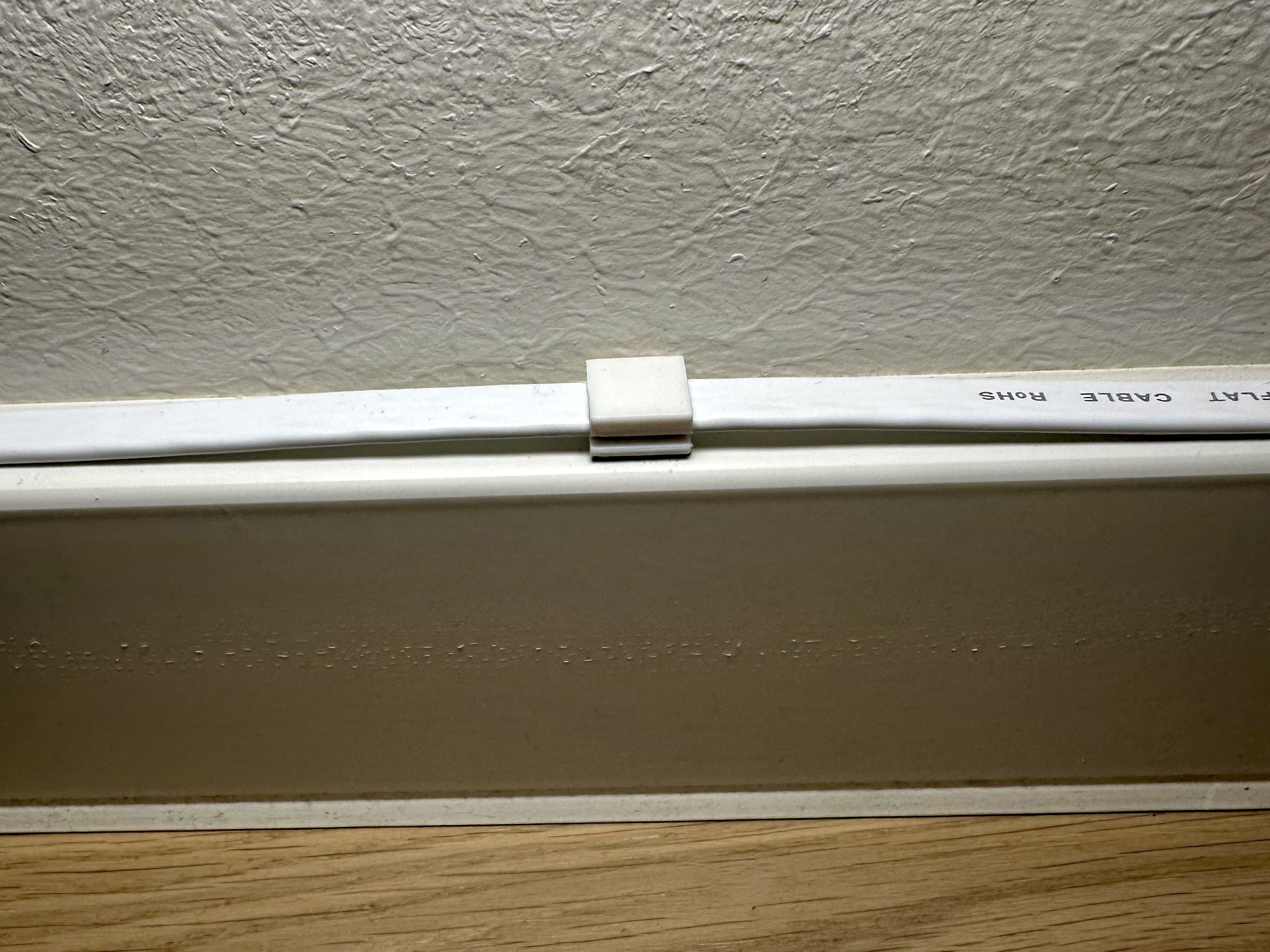 Kẹp cáp LAN dẹp để gắn lên chân tường hoặc khung cửa bằng băng keo hai mặt.