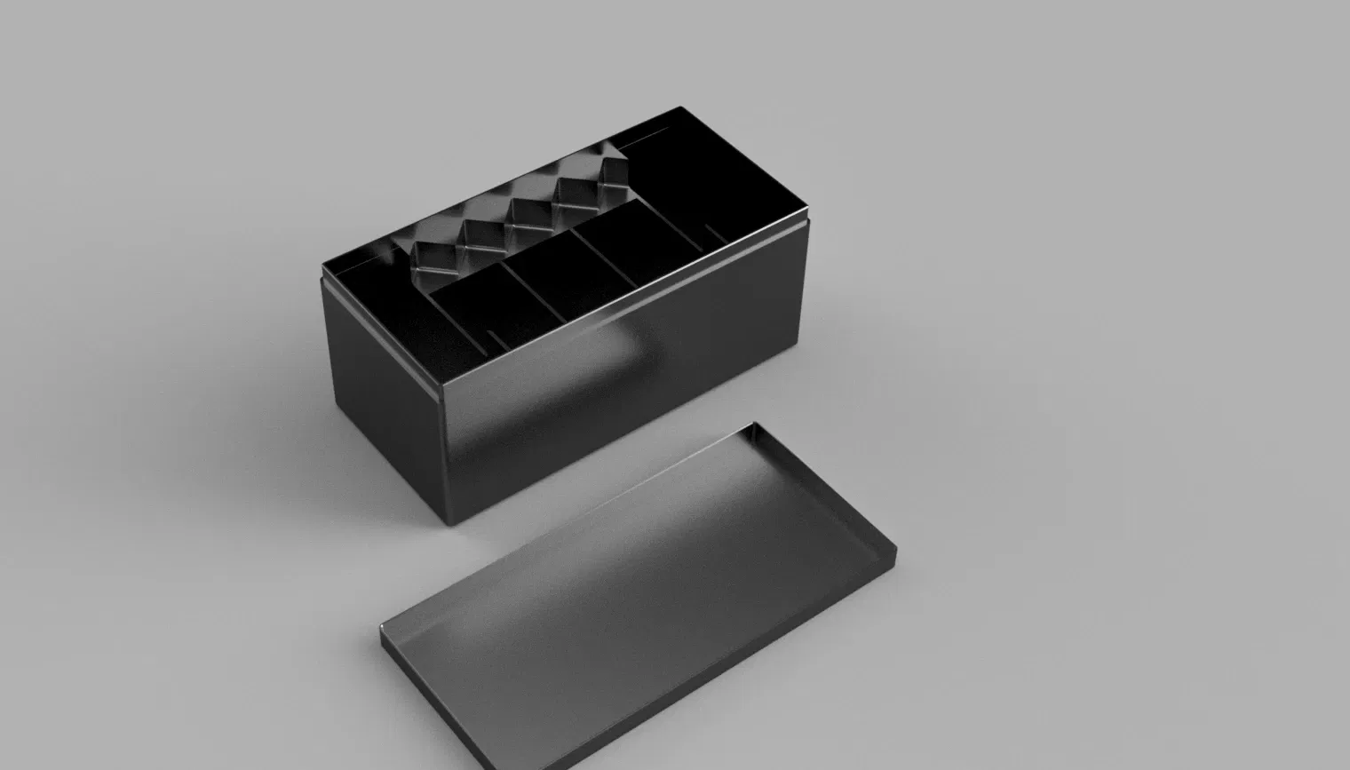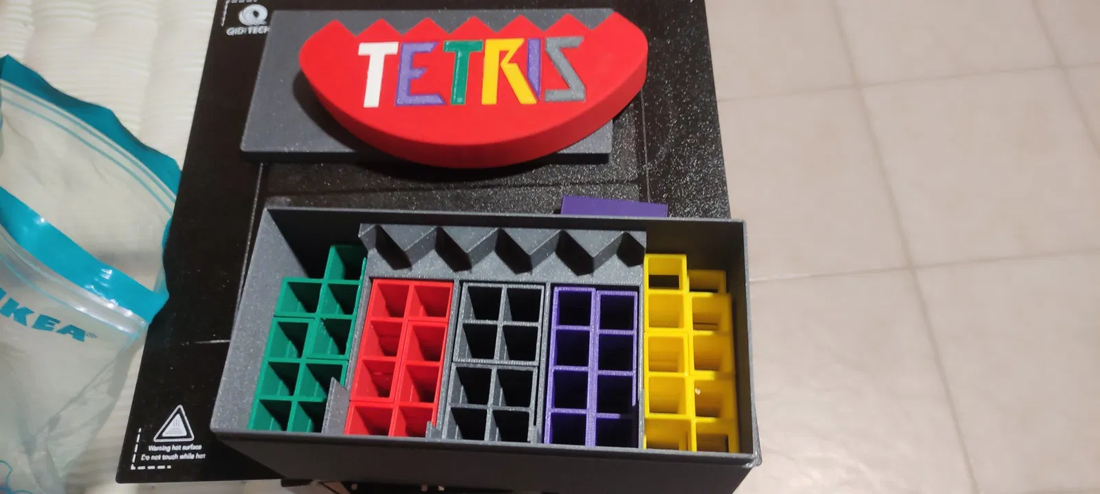 Hộp và nắp với tường dày 3 mm, và đáy cũng như các bên dày 2 mm, giảm vật liệu từ khoảng 600 gram xuống khoảng 300 gram, với cùng kích thước chiều cao và khoảng trống như bản gốc cho các mảnh, nhưng mảnh đo ngắn hơn 26 mm và rộng hơn 16 mm. Mô hình này chỉ dành cho hộp, bạn có thể tìm trò chơi Tetris tại đây.