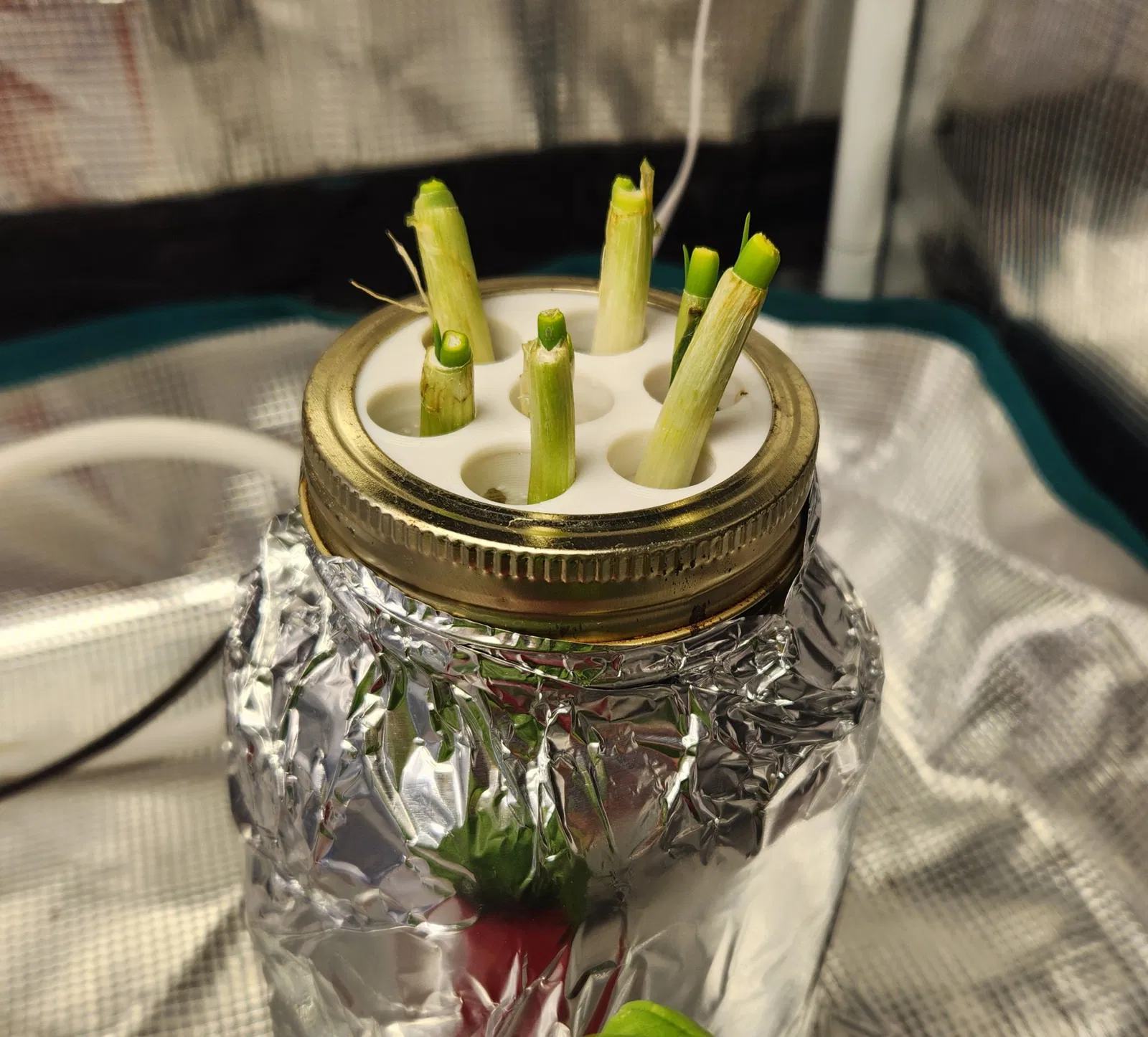 Trạm trồng hành lá trong lọ thủy tinh theo phương pháp Kratky