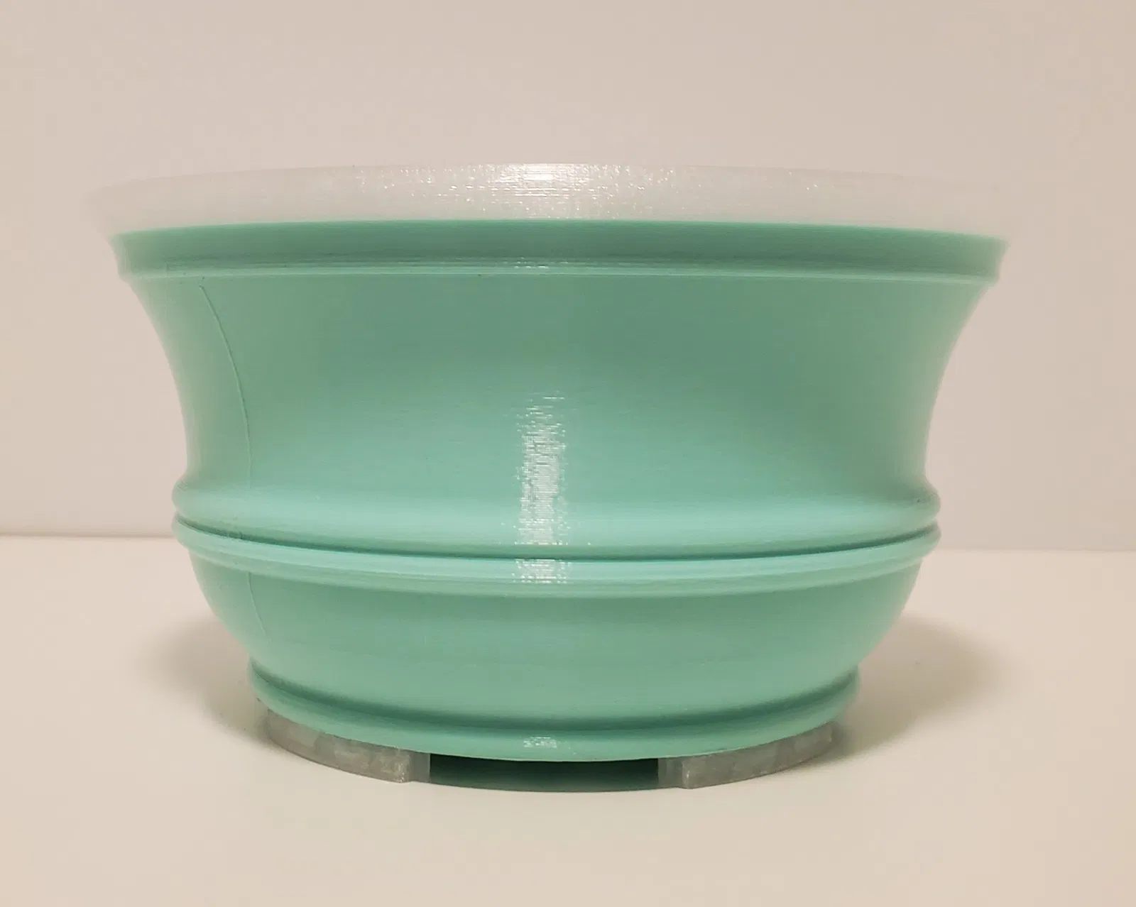Chậu Cây Bonsai 6" In trên Prusa Mk3s+ Chất liệu: Hatchbox PETG (Xanh Mint + Trắng Trong Suốt) Cài đặt In: - Miệng phun: .6mm - Nhiệt độ: Ngoài 245C - Bệ 85C - Chiều cao lớp: .3mm - Chiều cao lớp đầu tiên: .3mm - Hỗ trợ: Không có