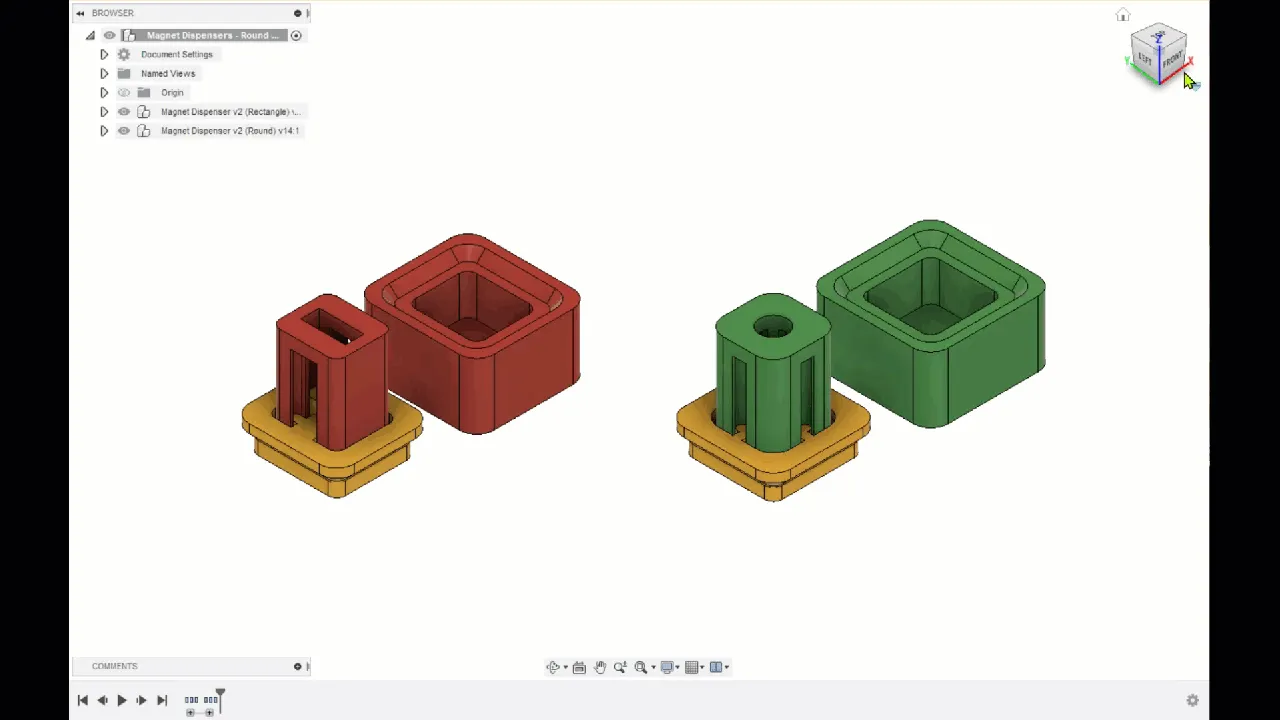 Tôi đã bao gồm một số tệp 3MF cho các kích thước nam châm hình chữ nhật và tròn phổ biến. Tôi cũng đã bao gồm các tệp nguồn Fusion để bạn có thể chỉnh sửa và remix. Các thiết kế sử dụng các tham số người dùng của Fusion nên rất dễ dàng để nhập các kích thước nam châm mới và các mô hình sẽ tự động thay đổi kích thước tương ứng.