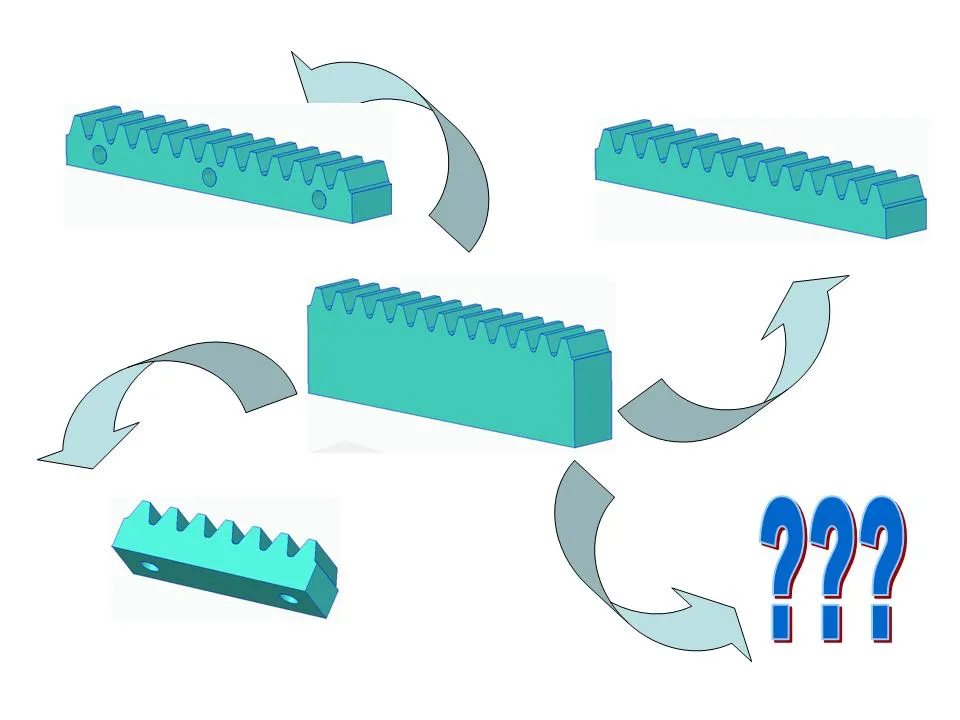 Tham chiếu chéo đến các bộ sưu tập bánh răng côn với cùng mô-đun phù hợp hoàn hảo với các thanh răng này. Những cái này cũng có thể được điều chỉnh chỉ với các chức năng cắt của slicer: