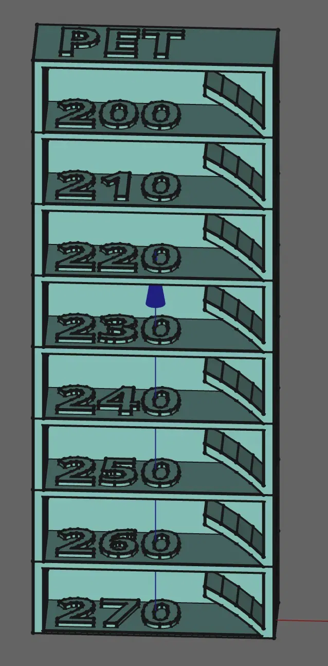 Hiệu quả về thời gian và vật liệu: Thay vì in nhiều đối tượng thử nghiệm hoặc thực hiện nhiều điều chỉnh cài đặt nhiệt độ trong quá trình in, một tháp nhiệt độ cho phép bạn hợp nhất việc thử nghiệm vào một đối tượng duy nhất. Điều này tiết kiệm thời gian và giảm lãng phí vật liệu bằng cách cung cấp một đánh giá toàn diện về cài đặt nhiệt độ trong một bản in duy nhất.