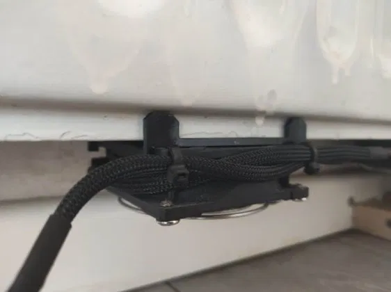 Với những kẹp quạt đơn giản này, tôi đã làm quạt tản nhiệt của mình từ mười quạt 80mm nối tiếp nhau bằng bộ chia chữ Y (độ dày cạnh quạt cho kẹp là 4mm). Các quạt được điều khiển bằng công tắc nhiệt và bộ điều chỉnh độ sáng LED đơn giản kết nối với bộ chuyển đổi DC12V (2A). Trong các kẹp vừa vặn hai nam châm có đường kính 10mm và dày 2mm. Không cần keo.