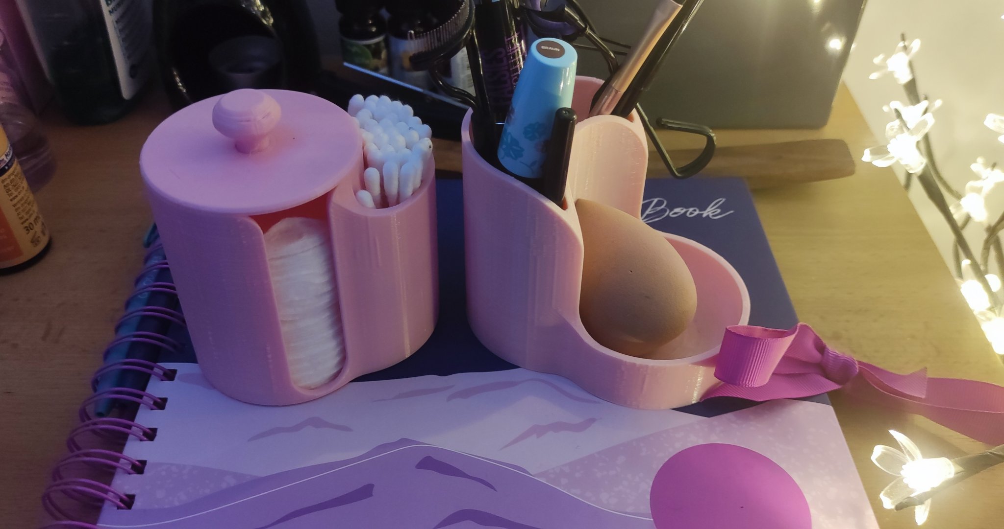 Hộp đựng cọ trang điểm, bông mút trang điểm và/hoặc các dụng cụ làm đẹp khác. Được làm theo phong cách tương tự như Hộp đựng bông tẩy trang/tăm bông của tôi