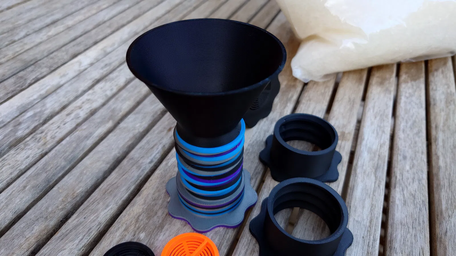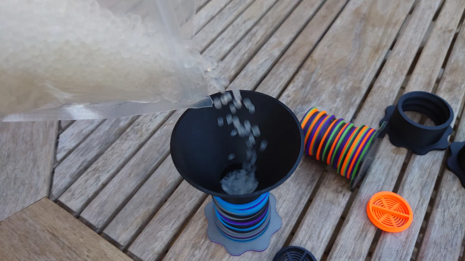 Đây là một phễu để dễ dàng đổ chất hút ẩm vào Giá đỡ cuộn có thể điều chỉnh cho Silica Gel / Trọng lượng cuộn. Tất nhiên, nó cũng phù hợp với phiên bản có đo độ ẩm vì nó có cùng kích thước nắp.