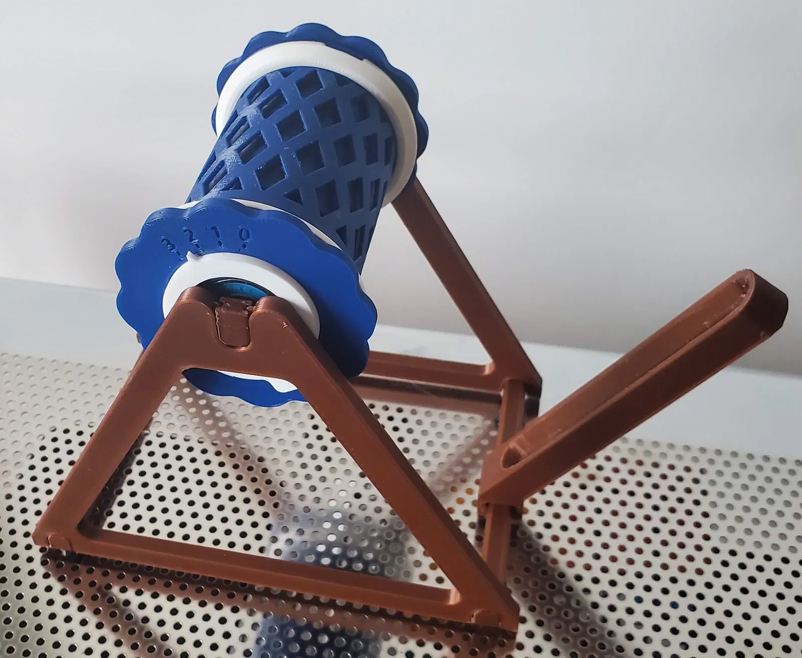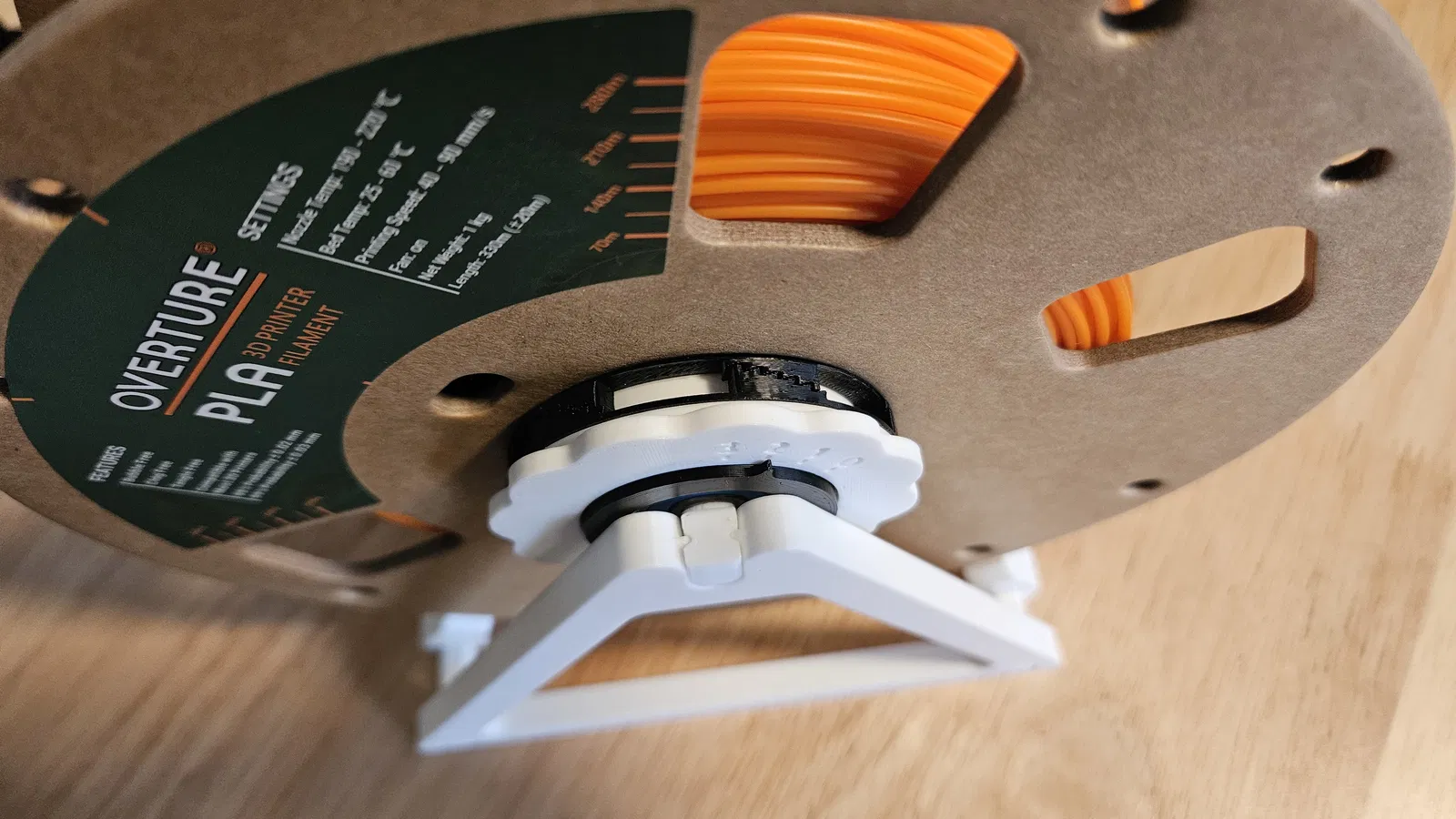 Giá đỡ cuộn dây tự tua lại với bộ ly hợp ma sát để giữ lực căng nhất quán. Phiên bản này có cấu hình thấp, dễ in và có thể điều chỉnh. Bao gồm các kích cỡ Tấm định vị bánh cóc để phù hợp với nhiều loại cuộn dây. Tối ưu hóa cho PLA, không cần hỗ trợ.