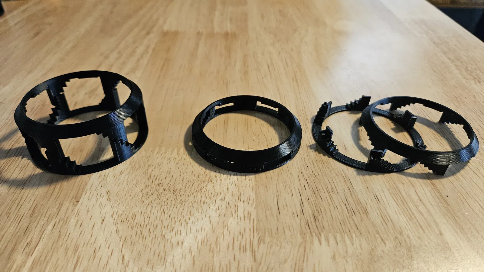 V7 (Lỗi thời) - Các vòng định tâm được đánh dấu bằng đường kính và chiều rộng cho lỗ cuộn dây mà chúng được thiết kế (Ví dụ: D55-W68), nhưng có nhiều độ cao miếng đệm khác nhau sẽ giúp lấp đầy bất kỳ khoảng trống nào.