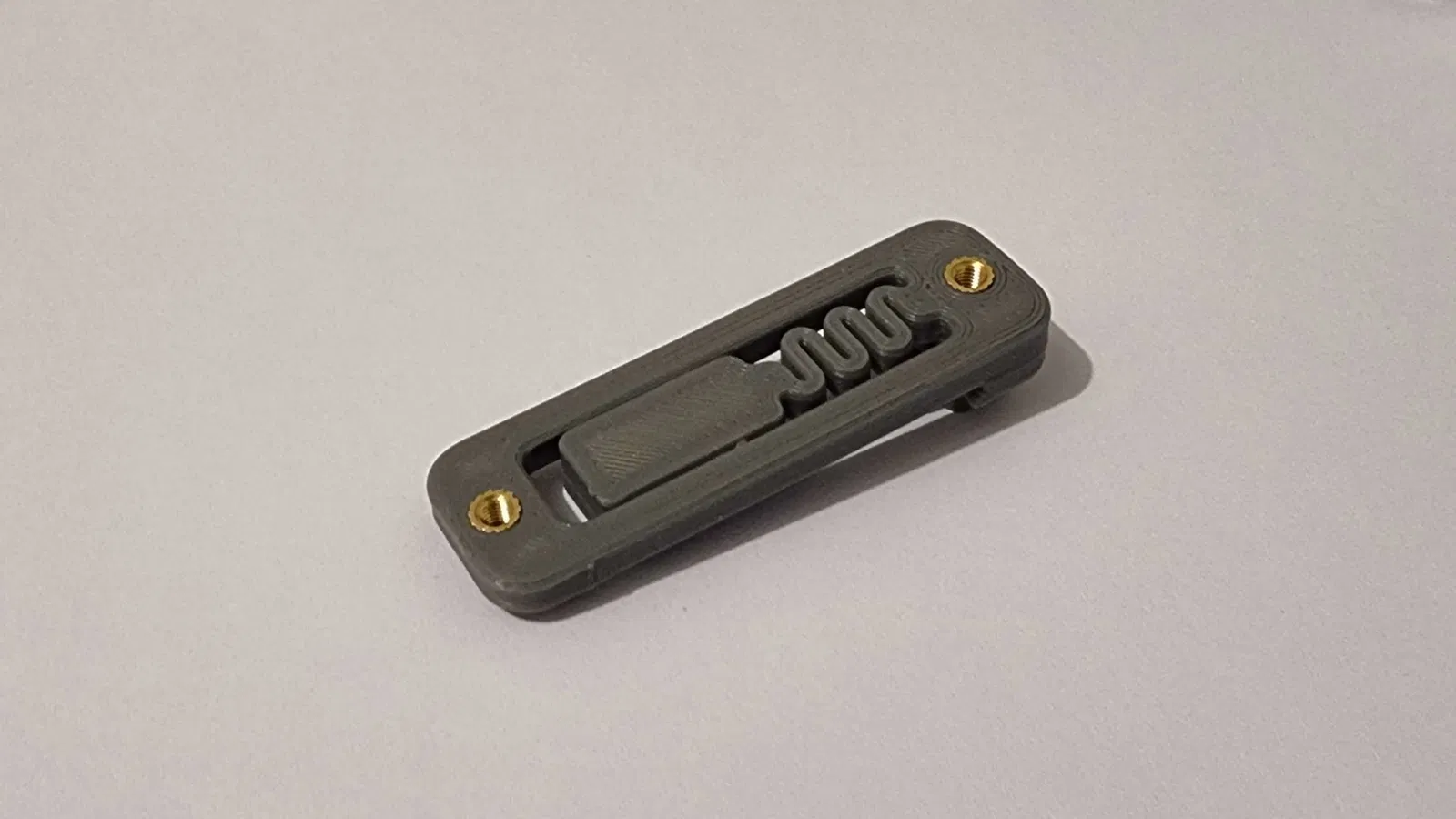 Một kẹp ray DIN được sửa đổi, sử dụng chèn nhiệt M3 (D4.6 x L4.0) với khoảng cách lỗ 51mm. Phiên bản này dựa trên giá đỡ ray DIN 35mm của Fabian và có sẵn tệp Step. Phiên bản không có lò xo cũng có sẵn.