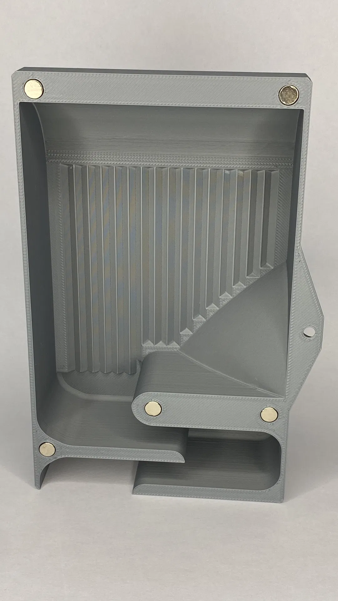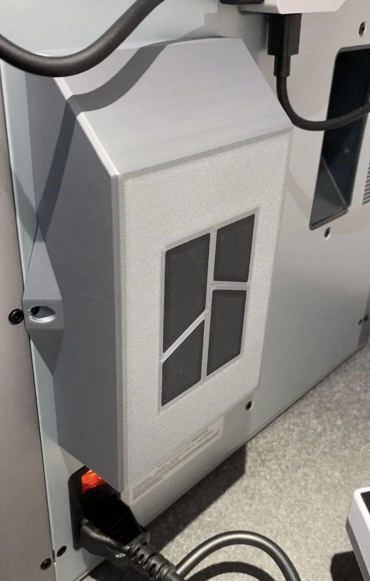 Bộ giảm thanh quạt gió Bambu Lab X1 / Bộ giảm thanh quạt (Phiên bản của Ed) Phiên bản chỉnh sửa của tôi từ bộ giảm thanh rất tuyệt vời của OurAngryBadger! CẢM ƠN vì các tệp step!!! :-) Thay đổi chính - phiên bản in rất đẹp (có logo bambu lab lớn) và dễ dàng không cần support / cầu nối! Bạn có thể vặn nó vào, nhưng nó sẽ giữ chắc chắn chỉ bằng nam châm! Tương thích hoàn toàn với AMS Hub - phiên bản có AMS HUB trong tên là tốt nhất cho việc này! Xem hai ảnh cuối... Tôi đã thay đổi một chút thuộc tính âm thanh và làm tròn đường cong thông gió và tôi đã kiểm tra giảm tiếng ồn khoảng ~5-6db! (Cách nhiệt bằng lớp nỉ thảm ~6-7db!) Chỉ để gắn bằng nam châm, bạn sẽ cần cho phiên bản 1.1. 10 chiếc nam châm 6x3mm (hai nam châm 6x3mm xếp chồng lên nhau cho mỗi lỗ). Như vậy là đủ để giữ bộ giảm thanh này chắc chắn! Chỉ cần dán chúng vào các lỗ! (Các lỗ lớn hơn một chút - khoảng hở cho hầu hết các loại nam châm ;-)) Nếu bạn không chắc nên in phiên bản nào - cứ chọn phiên bản AMS HUB cho nam châm 6mm hoặc 8mm - bạn sẽ thực sự an toàn, phiên bản này phù hợp cho mọi người có hoặc không có AMS HUB! :-) #### Hướng dẫn In / Lắp đặt (giống như bản gốc!): 1. Tôi khuyên bạn nên in với 4 lớp tường, 6 lớp trên và dưới, và chiều cao lớp 0.16mm trên Bambu X1. Bạn muốn một lớp vỏ rất chắc chắn để không khí/tiếng ồn không thoát ra dễ dàng. Chất liệu PLA là ổn.