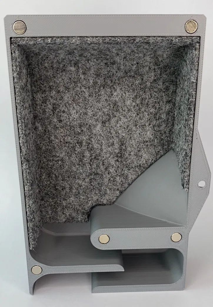 - v.2.1 - với 8x nam châm 6x3mm / 8x3mm / 10x3mm kép mà không có lỗ vít (trông thực sự đẹp và nếu bạn không sử dụng tùy chọn vít này - đây là phiên bản dành cho bạn :-) Cập nhật ngày 1.2.2023: Tôi đã tạo cho người dùng TheCableGuy96 một phiên bản cho AMS HUB và thêm nó vào đây! Nam châm phía trên giờ được đặt sang một bên. Tất cả các mẫu đều hợp lệ! :-) Cảm ơn TheCableGui96 vì ý tưởng và sự giúp đỡ! (tôi không có AMS hub :-) Chỉ cần lấy "bambu-x1c-muffler-for-ams-hub-eds-custom-8x3mm.stl" hoặc "bambu-x1c-muffler-for-ams-hub-eds-custom-6x3mm.stl" cho việc đó! :-) Cập nhật ngày 31.1.2023: Người dùng Gertsen đã điều chỉnh phiên bản này cho nam châm 10x5 (bạn chỉ cần 4 nam châm như vậy!) và tôi đã thêm nó vào đây! Cảm ơn Gertsen!!! :-) Chỉ cần lấy "bambu-x1c-muffler-gertsen_custom-10x5mm.stl" cho việc đó! :-) Cập nhật ngày 25.1.2023: Người dùng RobRobM đã điều chỉnh phiên bản này cho hai nam châm 10x3 và tôi đã thêm nó vào đây! Cảm ơn RobRobM!!! :-) Chỉ cần lấy "bambu-x1c-muffler-RobRobM_custom-10x3mm.stl" cho việc đó ;-) Cập nhật ngày 1.1.2023: Đã thêm phiên bản với hai nam châm 8x3! Chỉ cần lấy "Bambu X1C Muffler Eds Custom 8x3mm.stl" cho việc đó ;-) Cập nhật ngày 24.12.2022: TÙY CHỌN! bổ sung cách nhiệt bên trong bộ giảm thanh bằng lớp nỉ thảm - đã thêm mẫu cắt cho nỉ ;-) Tôi đã sử dụng thiết lập này trong nhiều tháng và bản sửa đổi đơn giản này chắc chắn làm cho X1 của tôi yên tĩnh hơn! Tôi không có thiết bị đo chính xác nào cho việc này, nhưng tiếng ồn của quạt chắc chắn đã được giảm thiểu hơn nữa đối với tai tôi - xem video về điều đó trên Kênh Instagram của tôi: https://www.instagram.com/reel/CmlUerEMyGf/?igshid=YmMyMTA2M2Y= THÔNG TIN từ Wikipedia: “Tăng mức áp suất âm thanh lên +6 dB tương ứng với việc tăng gấp đôi áp suất âm thanh” BambuLab X1 Carbon với AMS Mức độ tiếng ồn không có bộ giảm thanh