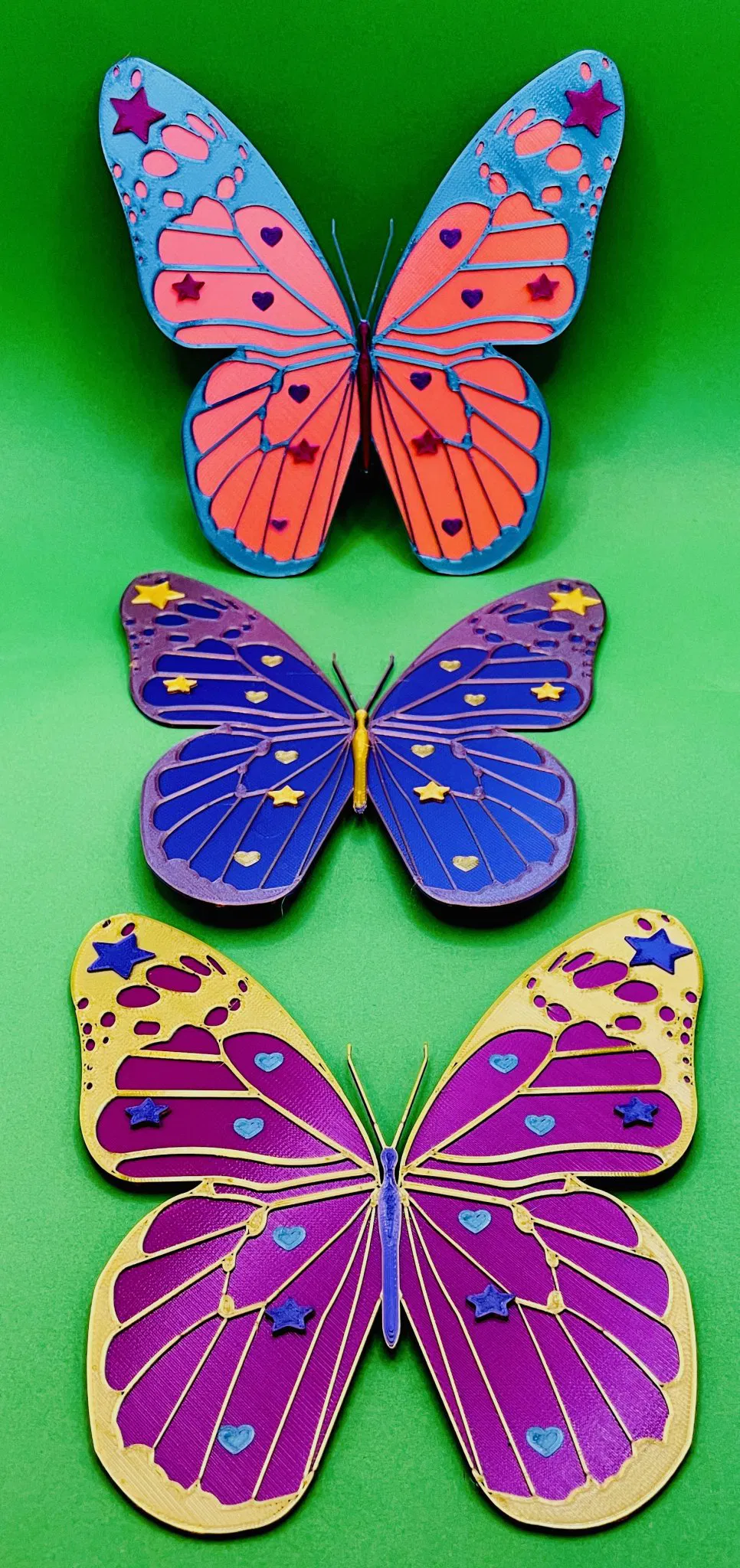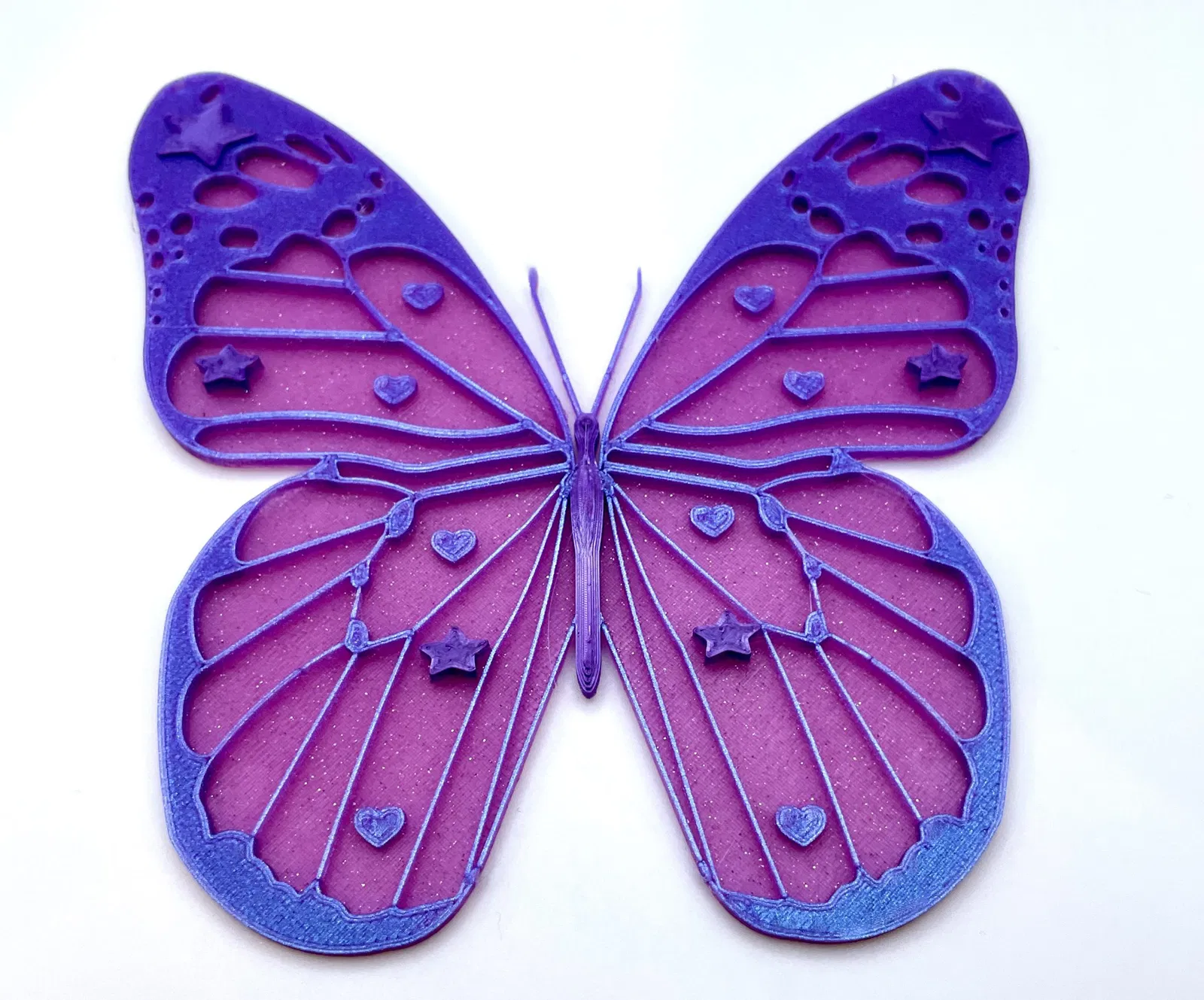 Một con bướm để kỷ niệm sự thay đổi màu sắc, hoặc sử dụng filament hai màu và tận hưởng niềm vui! Các con bướm có thể được phóng to hoặc thu nhỏ trong phần mềm cắt của bạn! Hãy chơi với trục X và Y của bạn! 💜🌟🦋 Tôi yêu những trái tim và ngôi sao, cảm giác của một đứa trẻ 90s! 💜🌟🦋 Xin vui lòng chia sẻ những sản phẩm của bạn! Tôi thích nhìn thấy tất cả màu sắc! Và kiếm Prusameters! **Hai Phiên Bản:** FlutterflyThicc với một chút kết cấu hơn, v...