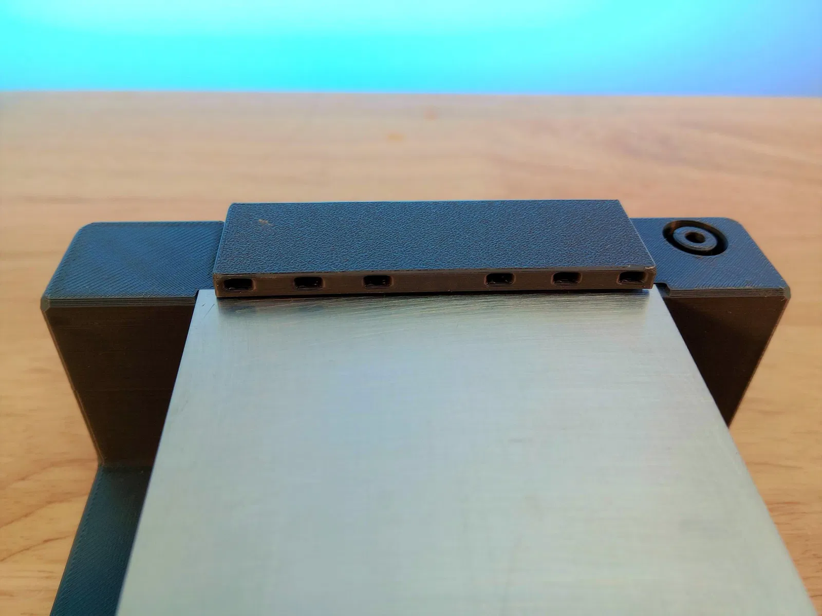 Mục đích Bản in này giữ chặt tấm kim loại nhôm tại chỗ. Lực kẹp được cung cấp bởi các nam châm gắn bên (6x2 mm). EDM là một quá trình lực thấp, có nghĩa là chỉ cần một lực rất nhỏ hoặc không cần lực nào để giữ chi tiết làm việc ở vị trí.
