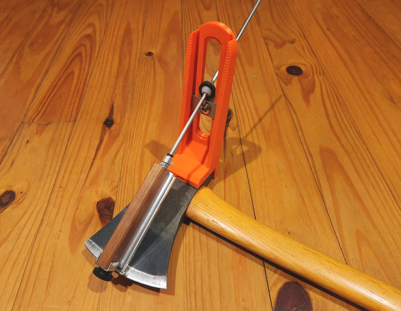 Cái này xài chung khớp bi, đế, đai ốc và đá mài của KME để mài rìu nha. Bản tui làm cao hơn để mài cạnh vát phụ. Anh em mài bén nhạy như cạo râu chỉ trong vài phút xài cái này. Có 2 bản KMEHatchet.stl và KMEAxe.stl.