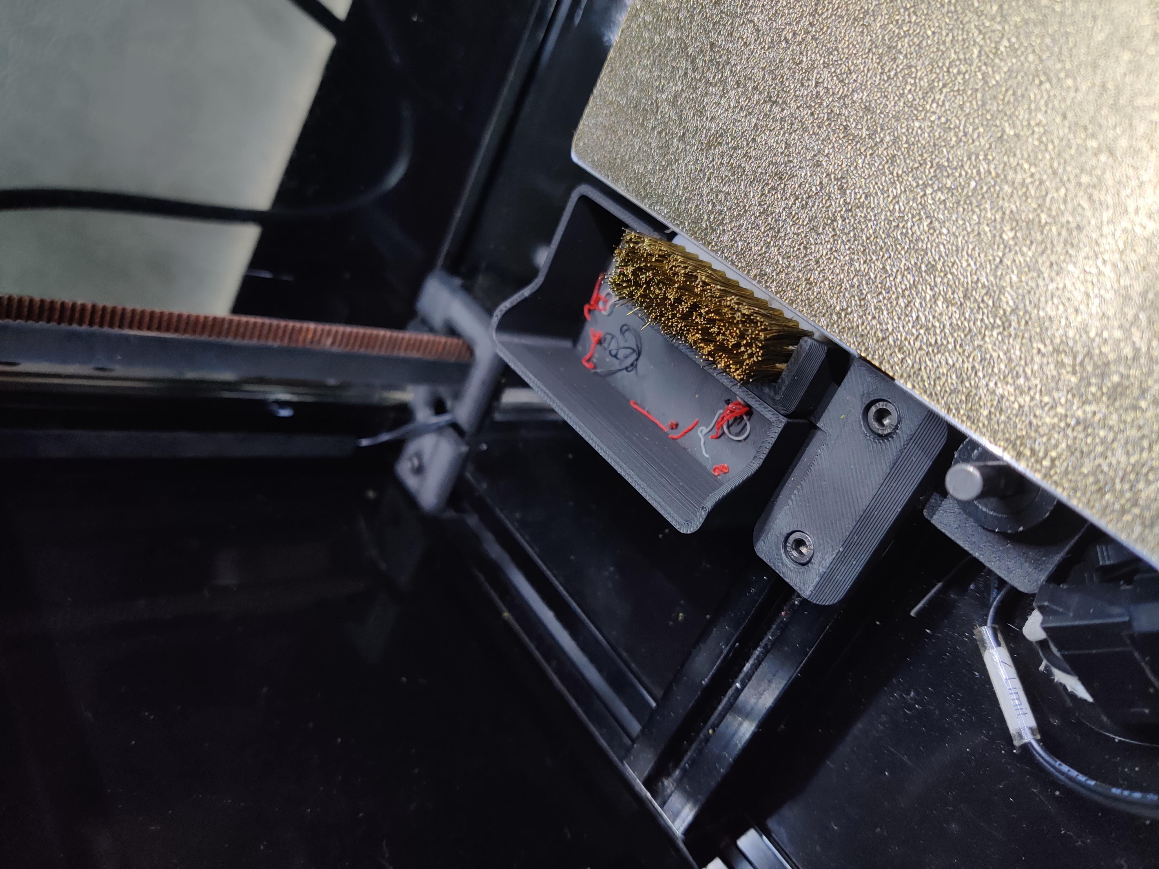 Bàn chải đồng vệ sinh đầu phun kèm thùng nhỏ, có 2 bộ phận ghép bằng nam châm, in không cần hỗ trợ. Phù hợp Voron 2.4 300mm, có thể dùng cho 250mm/350mm. Tương thích Klicky Probe và hiệu chỉnh Z offset.