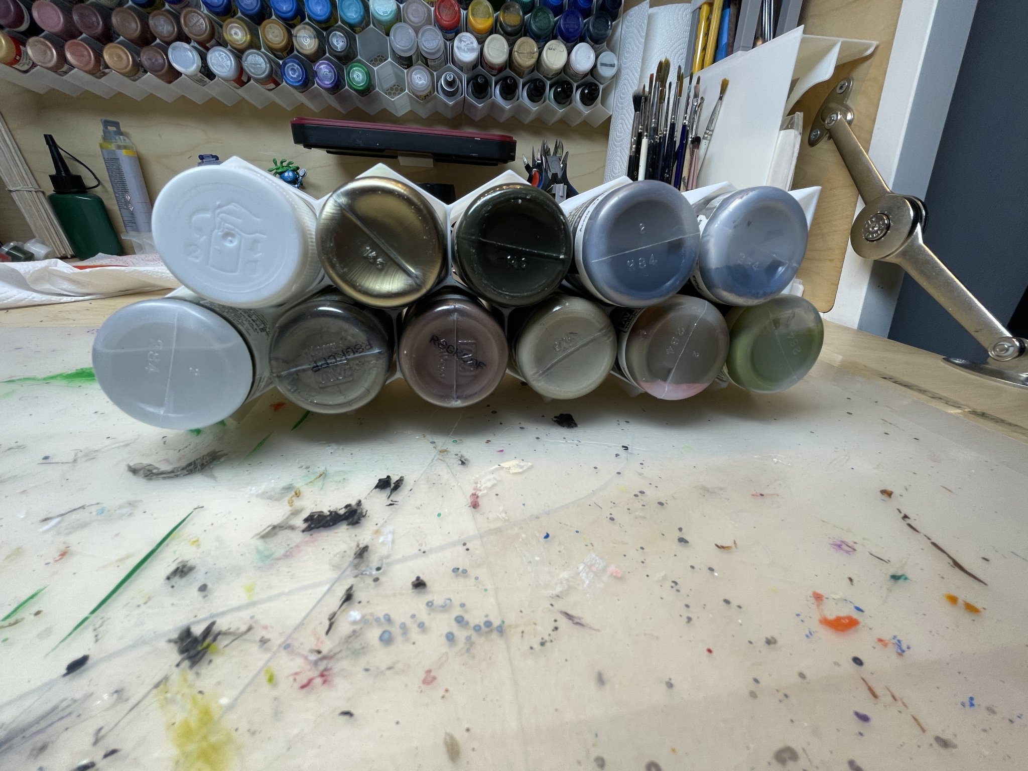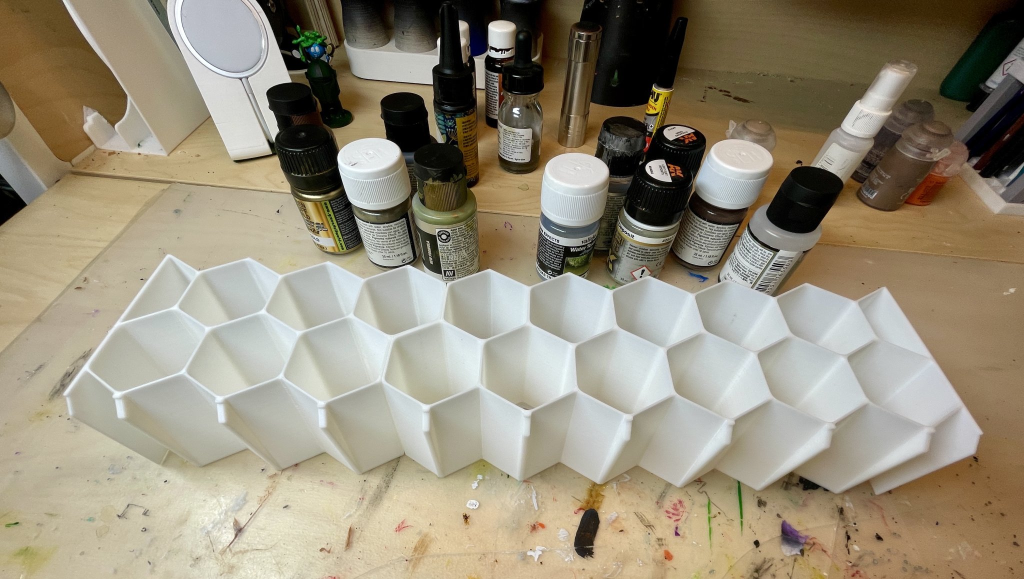 Cập nhật không gian sở thích nhỏ của tôi và gần như không cần lý do nào để học CAD với các thiết kế thực tế. Có một số phiên bản lưu trữ sơn đã có nhưng tôi muốn thử tự làm của riêng mình. Tôi đã lấy cảm hứng đặc biệt từ: HSW paint holder by Elvin | Download free STL model | F3D.com Vallejo Paint Color Stand/Holder (25 mm) by Whity | Download free STL model | F3D.com Elvin: Tôi thích hiệu quả vật liệu và không gian. cộng với Bestagons! Whity: bestagons trên mặt đất. Thông số của tôi: - tương thích với chai 35mm và các thiết kế nắp chai khác nhau của chúng.