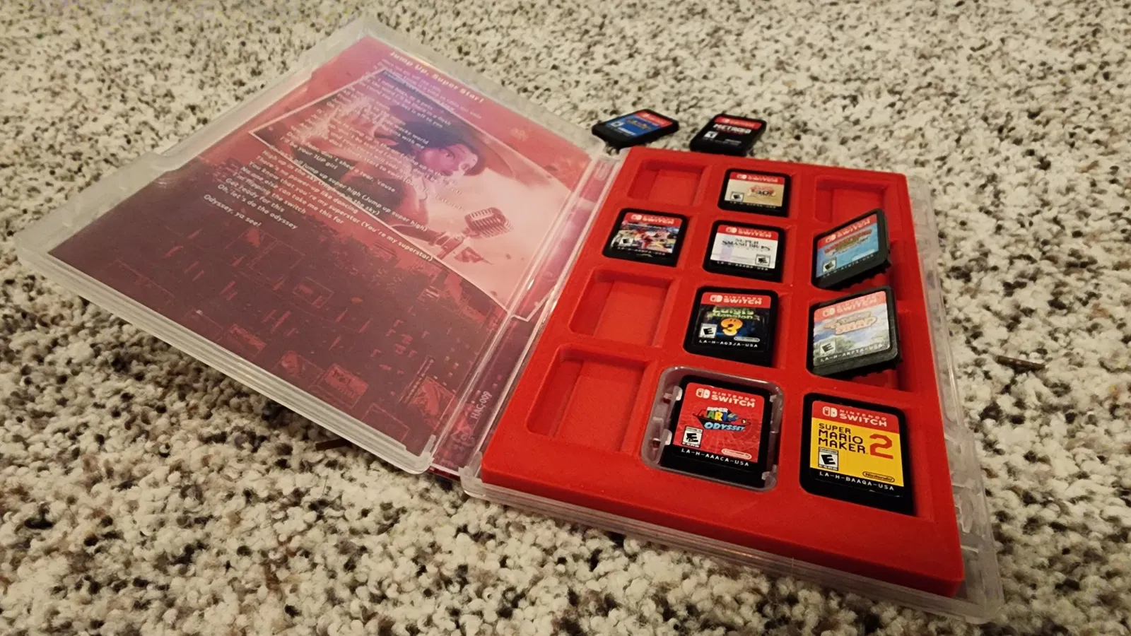 Tôi đã muốn in một cái hộp để chứa các thẻ trò chơi Switch từ lâu, nhưng tôi đã quyết định thay vì in lại bên ngoài, hãy tái sử dụng những hộp mà tôi đã có mà các thẻ trò chơi đã được gửi đến. Tôi nghĩ rằng điều này là "giảm thiểu, tái sử dụng, tái chế" hơn một chút vì bất kỳ ai có trò chơi Nintendo Switch sẽ có những hộp này trong tủ quần áo hoặc bị gửi đến bãi rác.