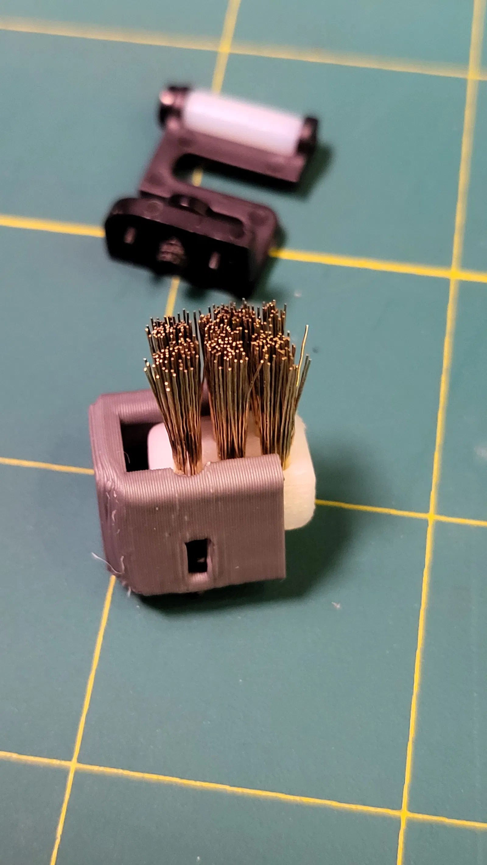 1- Cắt một đoạn nhỏ bàn chải đồng dài 7,5 đến 8mm (nó sẽ chứa 2 hàng bàn chải đồng)