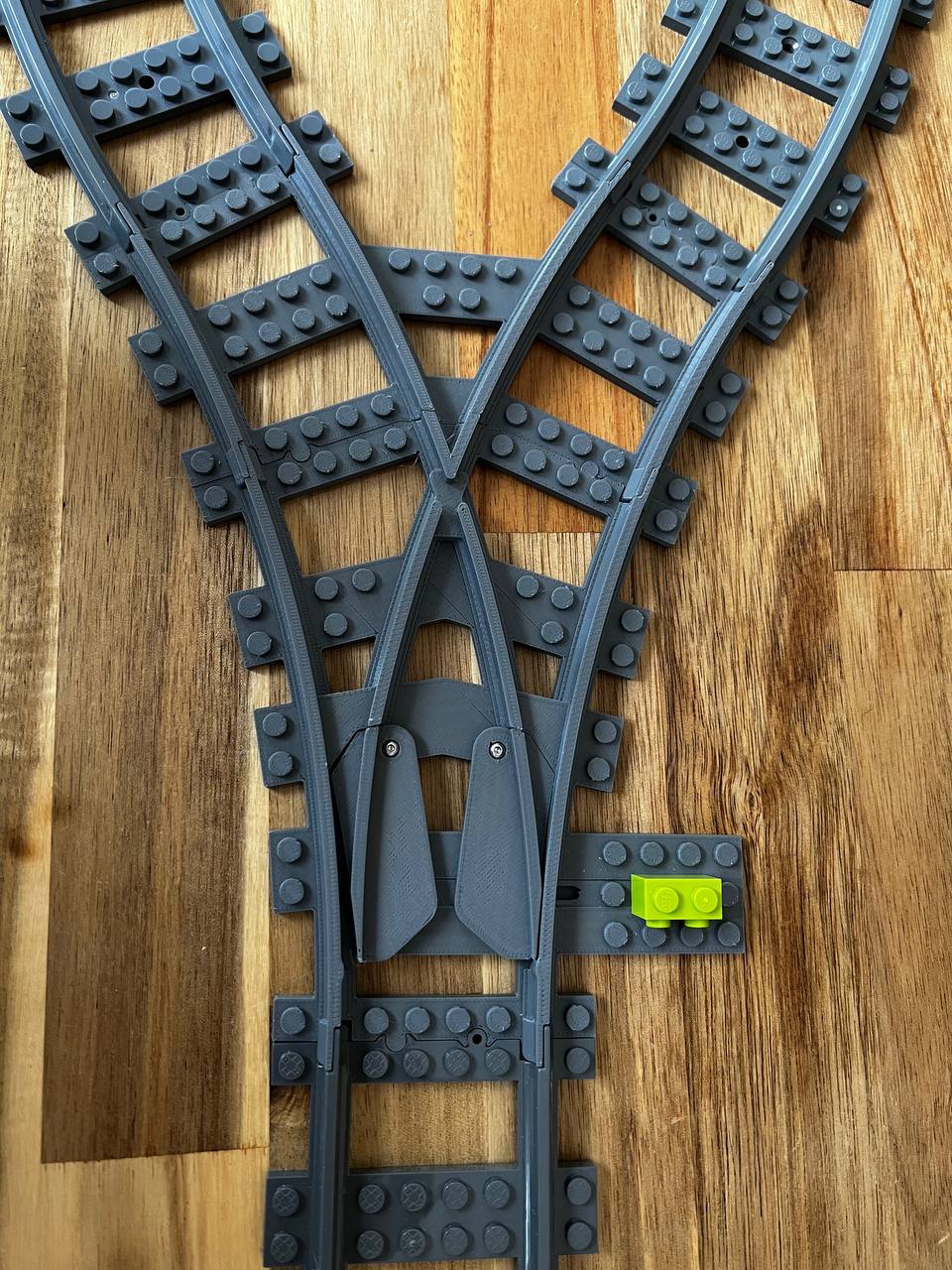 Công tắc có chiều dài gấp 1.5 lần đường ray cong lego tiêu chuẩn, có tính năng lò xo cho phép chuyển động của tàu từ cả hai hướng.