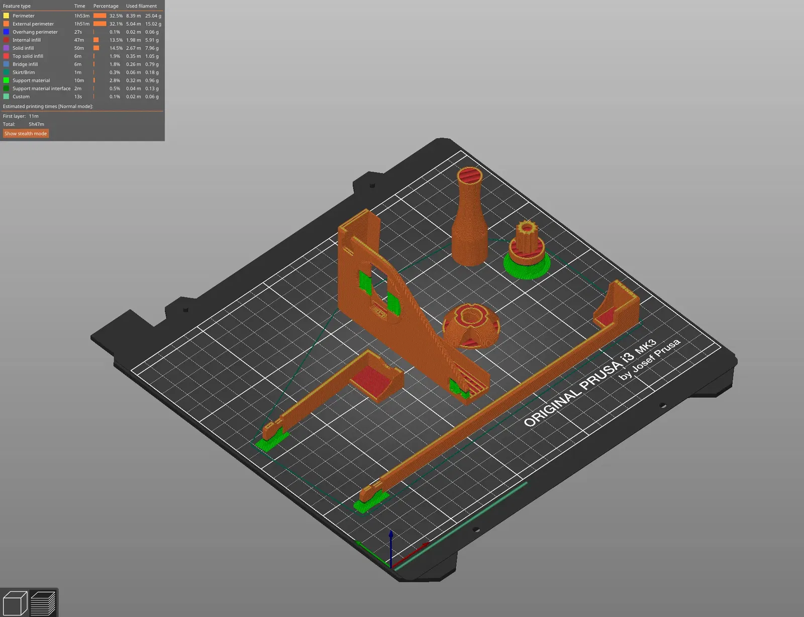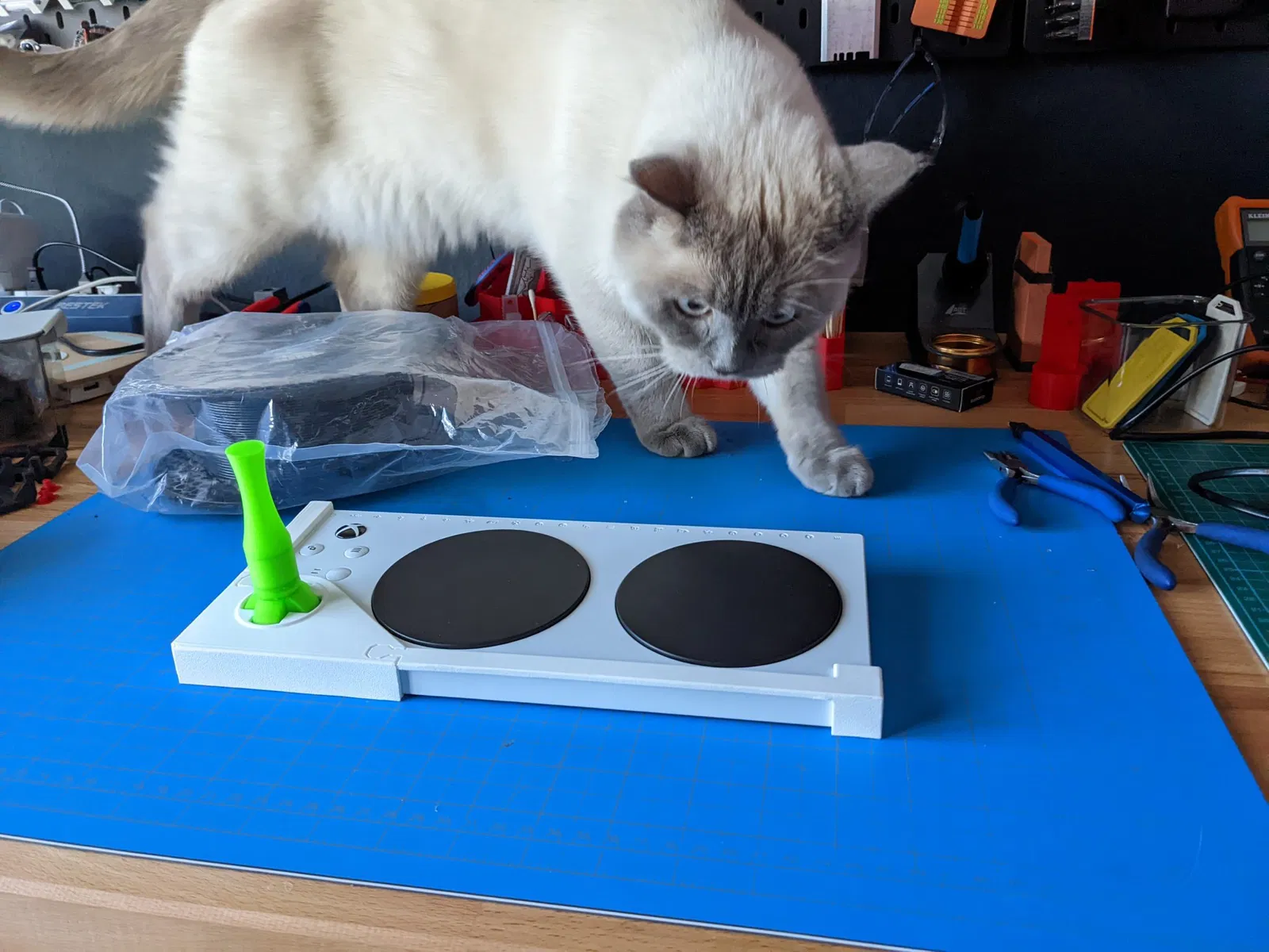 Fully printed clip-on adapter cho joysticks của XBox Adaptive Controller mô-đun được làm bởi Egon. Không cần tháo rời! Vui lòng cung cấp phản hồi nếu bạn có bất kỳ điều gì. #### Lắp ráp/Tháo rời Cẩn thận không đặt quá nhiều áp lực lên các khớp nối của tay cầm chính D-pad. Do hướng in, chúng dễ bị gãy khi bị căng thẳng. Tôi đang làm việc trên một thiết kế cập nhật cho phép kẹp chính được in ở một hướng mạnh mẽ hơn. 1. Đặt HandiAdapter_Base vào kẹp D-pad. 2. Vít bộ chuyển đổi đa năng vào cơ sở để giúp giữ cơ sở ở vị trí. 3. Trượt kẹp lên XAC. 4. Trượt đầu của một tay cầm vào một góc của XAC, nhẹ nhàng uốn đầu kết nối lên trên để nó có thể căn chỉnh với lỗ trên thân kẹp chính. 5. Nhấn đầu nối tay cầm vào thân kẹp. Đây là một khớp ép, nhưng điều này không nên yêu cầu lực lớn. Lực quá mức sẽ làm hỏng thân kẹp. Khi không chắc chắn, hãy cắt một chút ở đầu nối tay cầm và thử lại. 6. Lặp lại cho tay cầm còn lại. Để tháo rời, hãy nâng đầu nối tay cầm ra khỏi thân kẹp trước khi cố gắng tháo tay cầm ra khỏi XAC. Điều này tránh đặt áp lực dư thừa lên kết nối. #### In ấn Các bộ phận cho kẹp nên được in theo hướng đã định. Chiều cao lớp 0.2mm hoặc thấp hơn. Hỗ trợ là cần thiết trên kẹp D-pad dưới các phần không thể cầu nối của lỗ cắt D-pad và điểm kết nối bên phải, cũng như trên các đầu nối của các tay cầm kẹp. Xem ảnh chụp màn hình slicer và tệp 3mf để biết thêm chi tiết. Để thuận tiện, thư mục Joysticks chứa các tệp cho các phụ kiện và phụ kiện joystick khác nhau từ dự án gốc. Bạn có thể tìm thấy hướng dẫn in và lắp ráp được khuyến nghị tại đây.