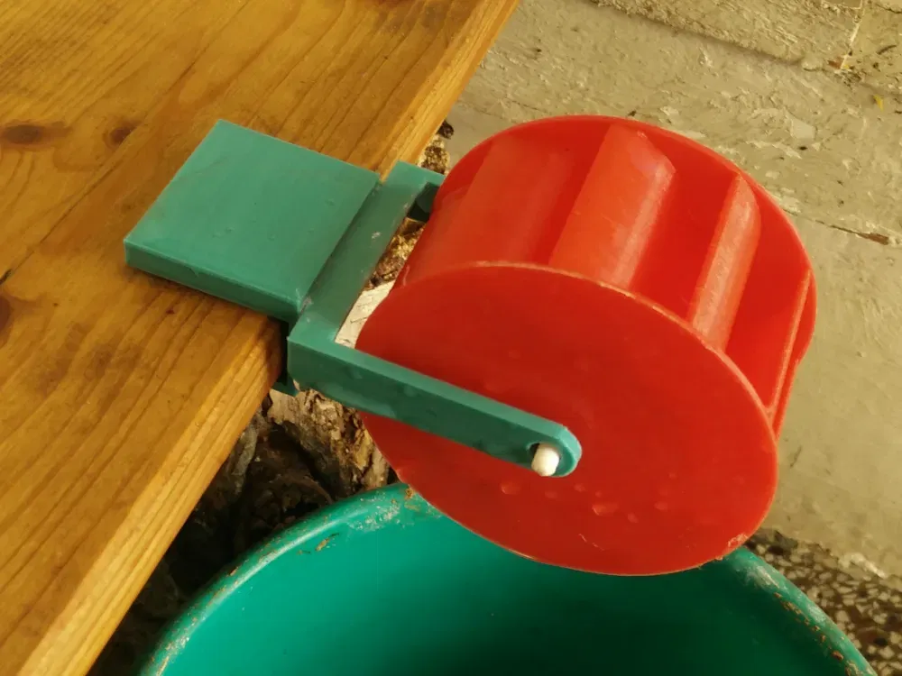 Đây là một chủ đề đang diễn ra, bánh xe nước được cung cấp năng lượng bởi nước thừa khi tưới cây trên ban công của tôi. Tôi đã làm một vài thứ trước đó, trong số đó có và water-wheel-and-holders. Các kích thước cơ bản từ đó áp dụng ở đây như thể mọi thứ đều được thực hiện cho một tấm 19mm. Điều tôi muốn bây giờ là một cách để gắn một bánh xe lớn (40x45mm) sao cho nó không đứng thẳng mà được giữ nằm ngang trước một tấm ván. Bức tranh giải thích tốt hơn lời nói. Để làm cho việc in ấn dễ dàng hơn, tôi đã thiết kế nó thành 2 phần. Có một ổ cắm đi qua tấm ván và có một túi nơi phần còn lại giữ bánh xe có thể được đẩy vào. Sự vừa vặn thì hơi thoải mái nên dễ dàng điều chỉnh vị trí nếu cần. Thêm bánh xe nước vào một trục và đừng quên thêm một vòng đệm ở cả hai bên giữa bánh xe và giá đỡ để tránh bánh xe dính vào bên của giá đỡ. Nếu bạn không có vòng đệm phù hợp, hãy sử dụng 2 vòng dây trên một vật tròn dày hơn trục (ví dụ: trục của một cái tua vít) để tạo ra vòng đệm của riêng bạn. Khi bánh xe đã được gắn, hãy đặt một bể chứa nước ngay trên nó. Điều đó rất dễ dàng với tôi vì tôi đã có một 'khu vườn treo' và chỉ cần thêm nó vào. Một chai nước rỗng mà bạn cắt đáy ra và làm 3 lỗ để gắn nó vào các sợi bông, cái gì đó như vậy... Một điểm nhạy cảm là lỗ trên nắp phải đi càng thẳng càng tốt để dòng nước áp suất thấp đi xuống cùng một điểm với dòng nước áp suất cao. Nếu không, bạn sẽ phải điều chỉnh vị trí của bánh xe nước trong quá trình sử dụng. Và sau đó? Nó chạy 18 phút với tôi với 1,5 lít nước trong một bể chứa nước Saskia. Tôi đã bao gồm các tệp mô hình cho bánh xe nước 40x45 và trục, đây là một bản remix của WATER MILL BATH TOY bởi TheSloppyApprentice