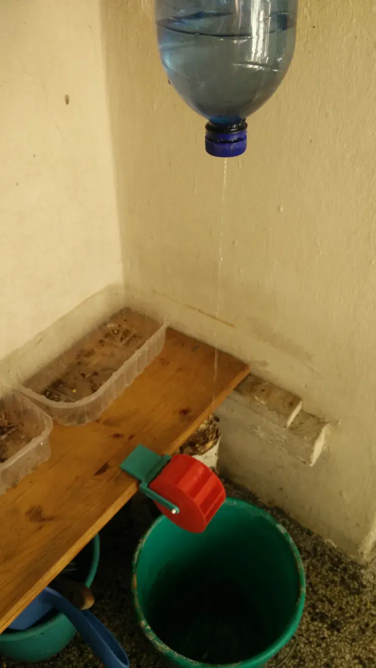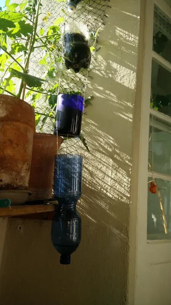 Một bánh xe nước hoạt động 18 phút mà không cần bơm, được cung cấp năng lượng bởi một bể nước trong một chai nước rỗng. Dưới đây là các bộ phận.