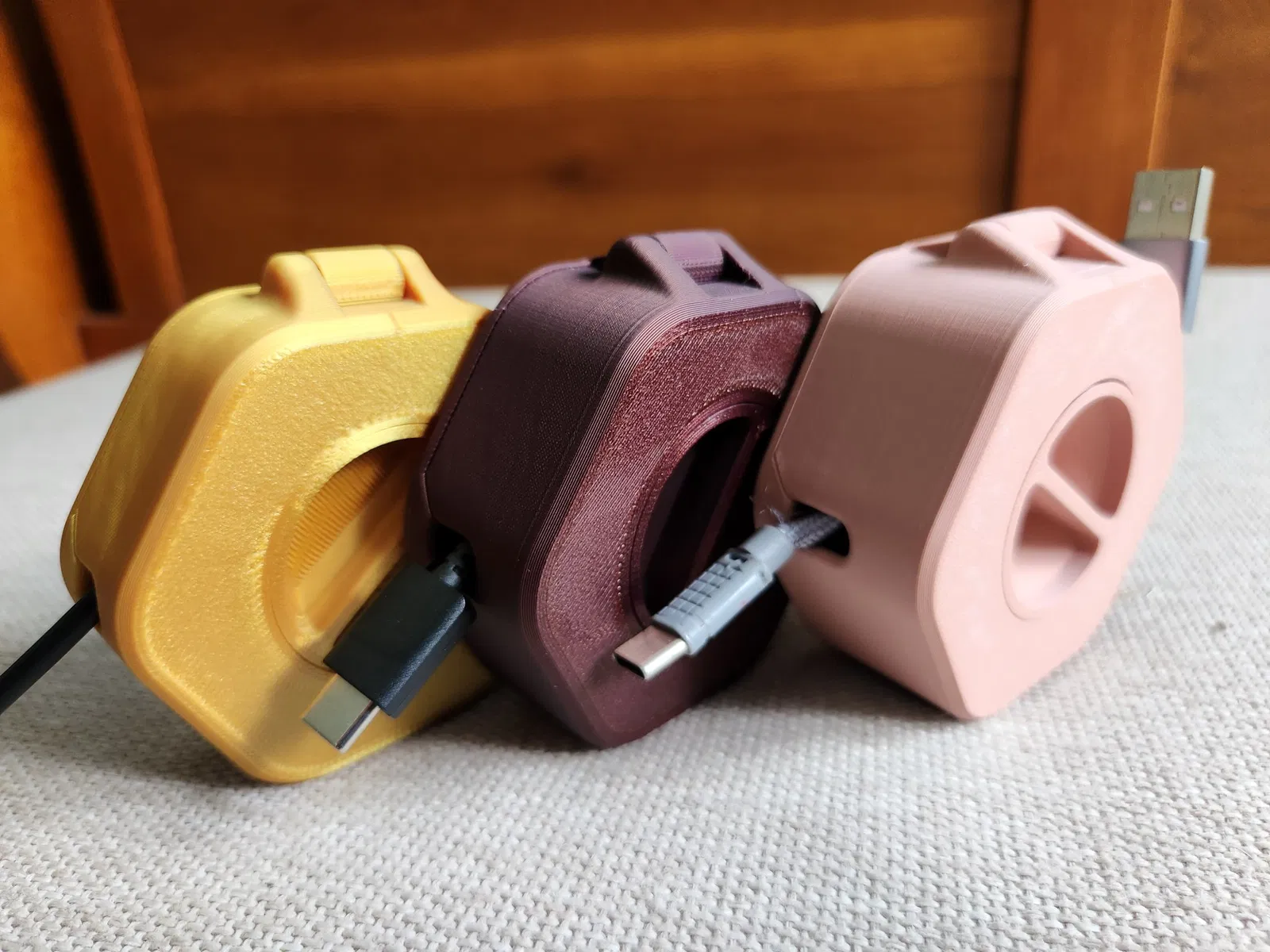 Sau khi in xong, bạn sẽ muốn đặt cáp vào rãnh ở giữa, đóng nắp (được thiết kế cố ý để đóng chặt), cuộn dây cáp theo chiều kim đồng hồ bằng tay cầm, và sau đó kéo ra bằng cách nắm cáp ở cả hai đầu.