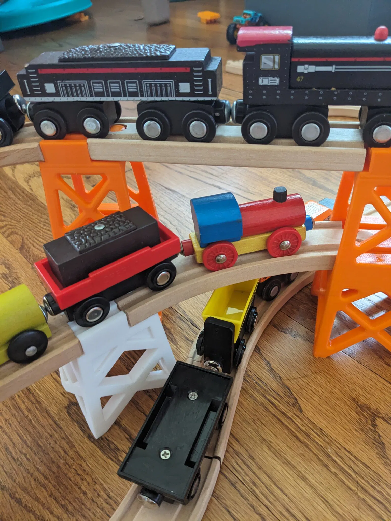 Đây là một giá đỡ cao gấp đôi cho các loại tàu Brio, với một kết nối ở độ cao cầu tiêu chuẩn và cầu cao gấp đôi. Mô hình này có thể in mà không cần hỗ trợ, nhưng nó yêu cầu một số cầu nối. Tôi cũng khuyên bạn nên sử dụng một viền để đảm bảo in thành công. Nếu bạn thích mô hình này, hãy xem bộ sưu tập này của các mô hình tàu đồ chơi khác của tôi.