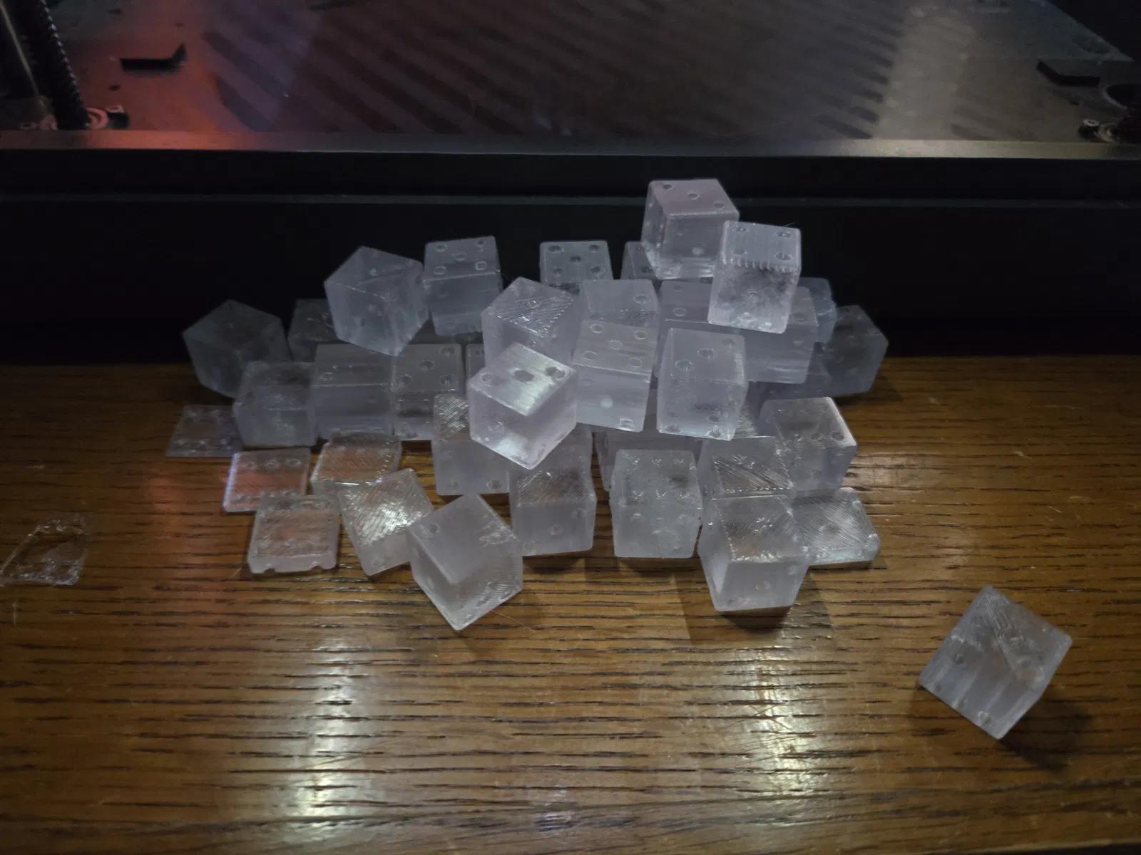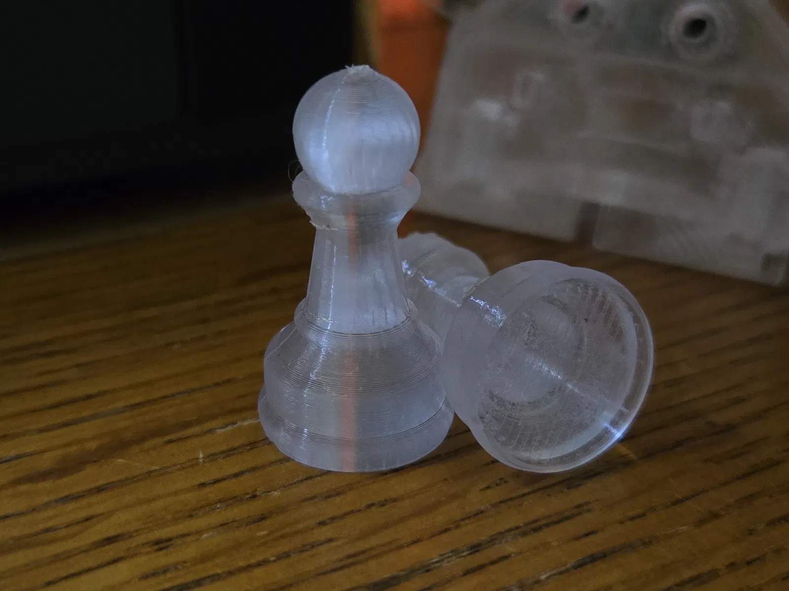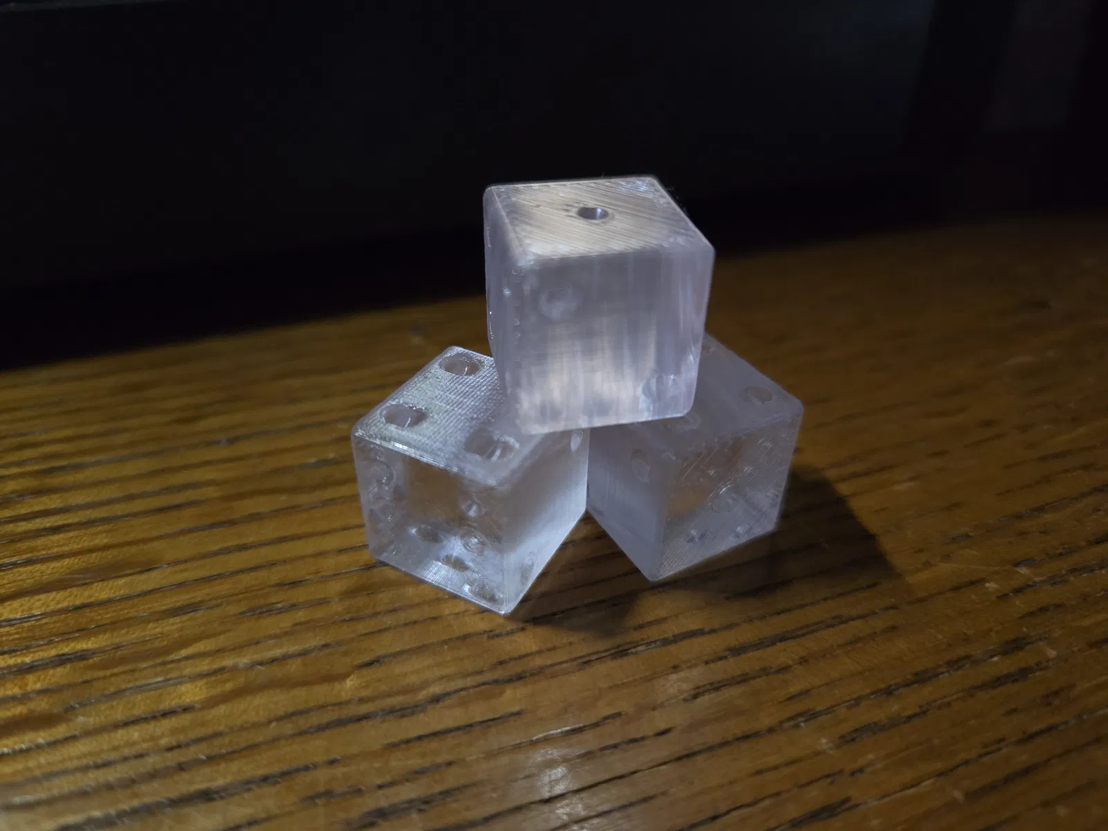 Góc nhìn duy nhất mà vật thể in của bạn trông hoàn toàn trong suốt là từ bề mặt dưới. Điều này là do các lớp trên cùng sẽ lộ rõ các đường vân, và các cạnh bên luôn có vẻ hơi mờ do cách filament được đùn ra và đặt xuống.