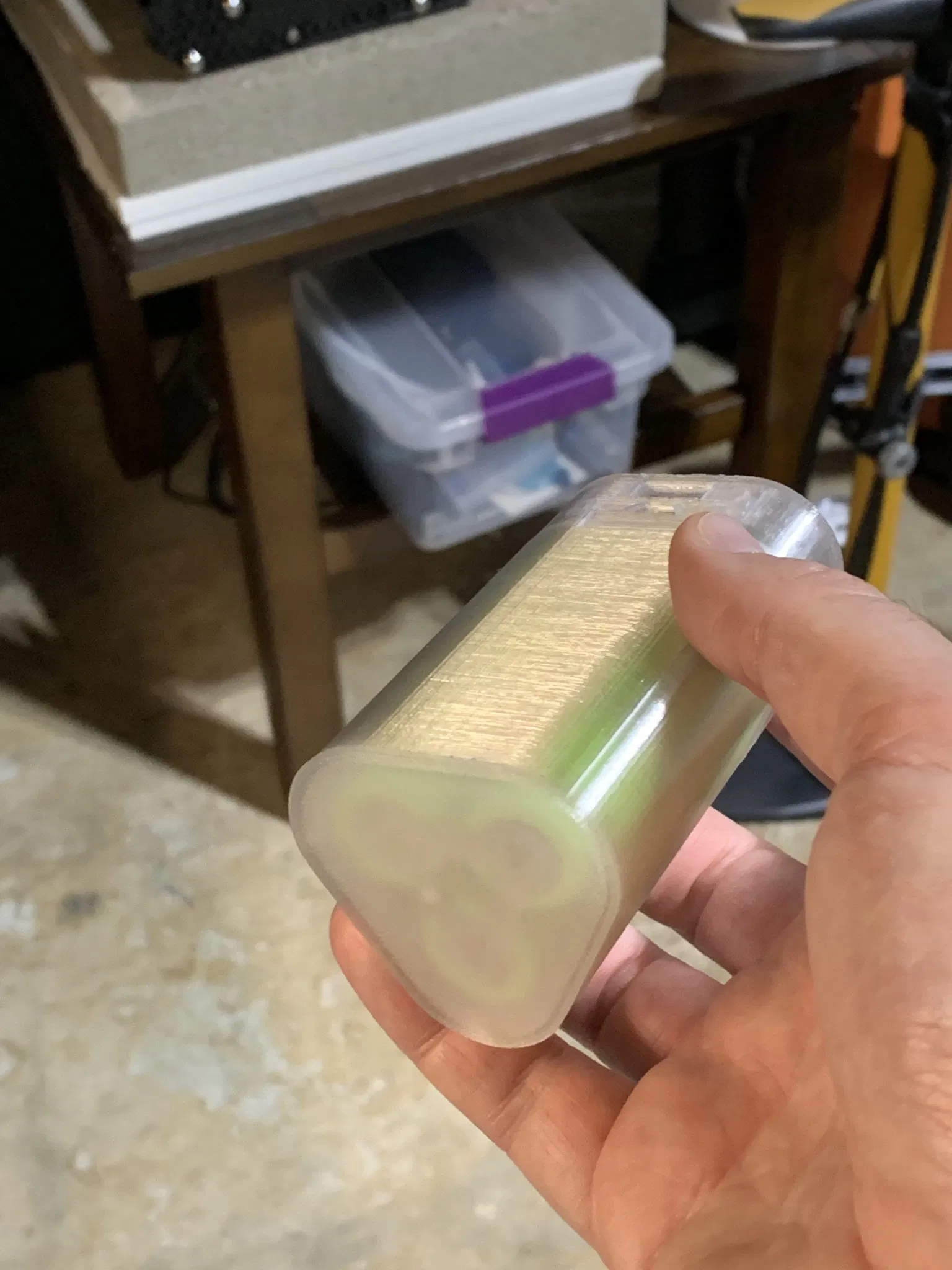 Tôi đã in thử bằng PLA và PETG và cả hai đều cho kết quả tuyệt vời. Nếu bạn sử dụng PLA, hãy lưu ý rằng keo nến nóng chảy sẽ làm biến dạng nó do nhiệt. Điều này sẽ không xảy ra với PETG.