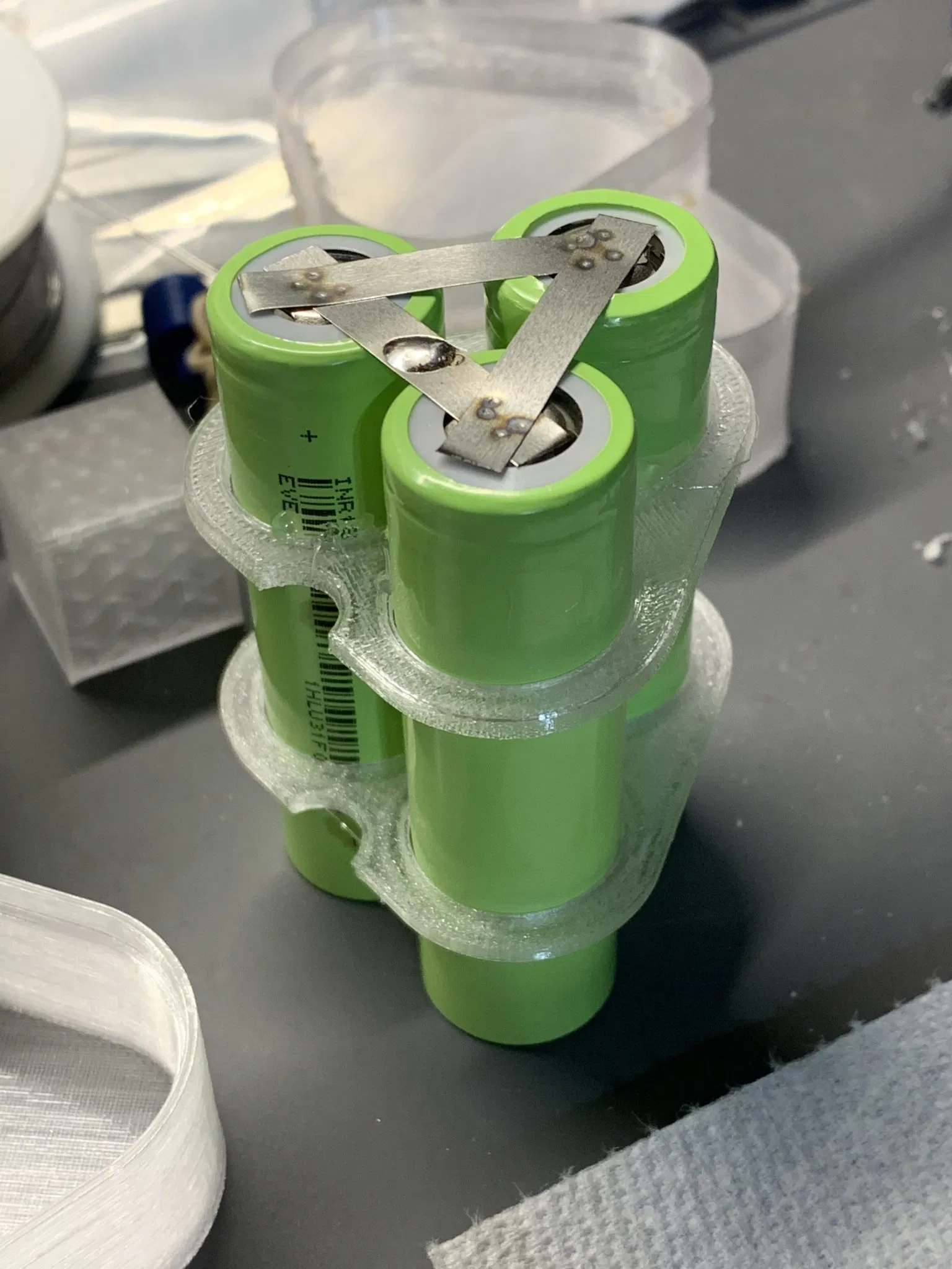 - Thêm keo nến vào các cực âm của pin.