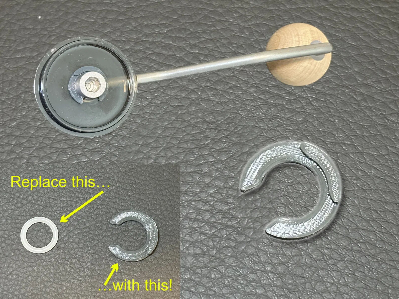 Cái kẹp giữ tay quay cho máy xay cà phê KINGrinder này sẽ thay thế cái O-ring dễ bị rơi ra. Đảm bảo tay quay luôn chắc chắn và không còn tiếng kêu khó chịu. In ấn dễ dàng với khuyến nghị tùy chỉnh.