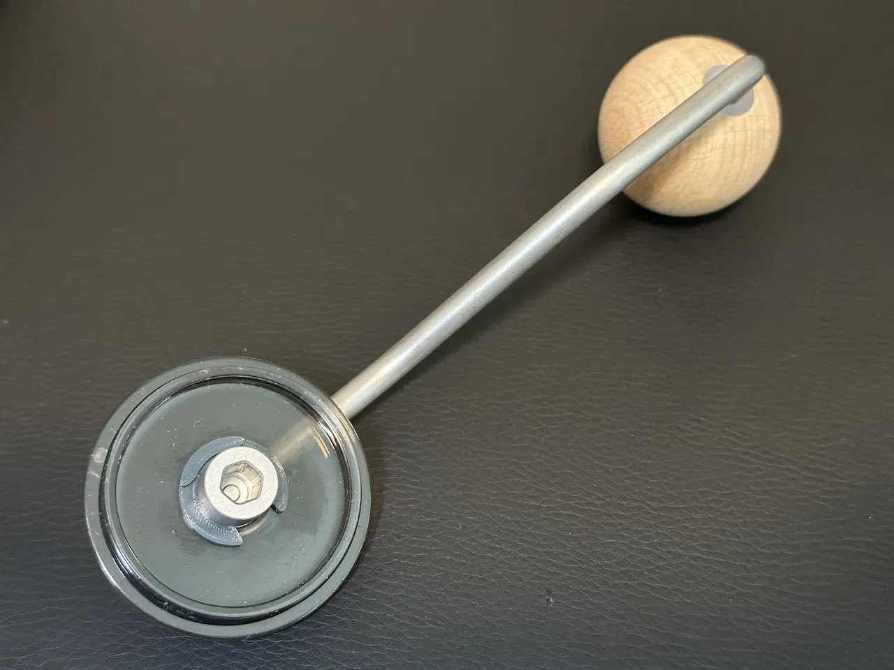 Tui thích dùng cái KINGrinder của tui để tự xay cà phê mỗi sáng, nhưng mà dùng một thời gian tui phát hiện ra có cái lỗi thiết kế. Người ta dùng cái O-ring để giữ cái nắp cối xay với cái tay quay, nó nằm trong một cái rãnh nhỏ trên trục tay quay đó. Vấn đề là cái O-ring nó dễ bị lăn ra khỏi rãnh lắm, rồi nó có thể rớt vô cối xay hoặc bay tứ tung khắp phòng. Lúc đó tui tưởng tui làm mất luôn rồi, nên tui mới thiết kế cái này để thay thế, mà ai dè cái O-ring nó lại xuất hiện lại trên bàn bếp sau cả tuần.