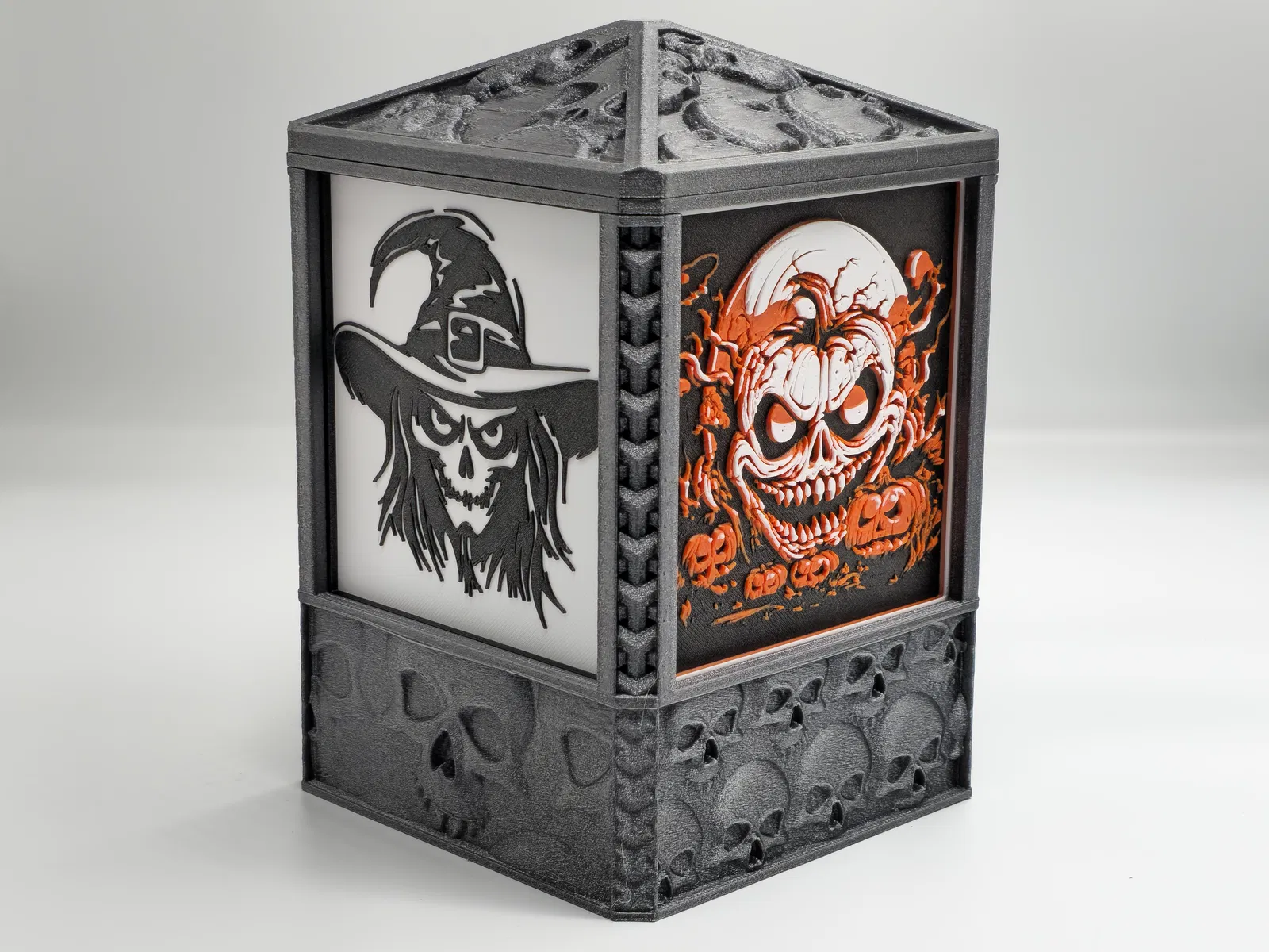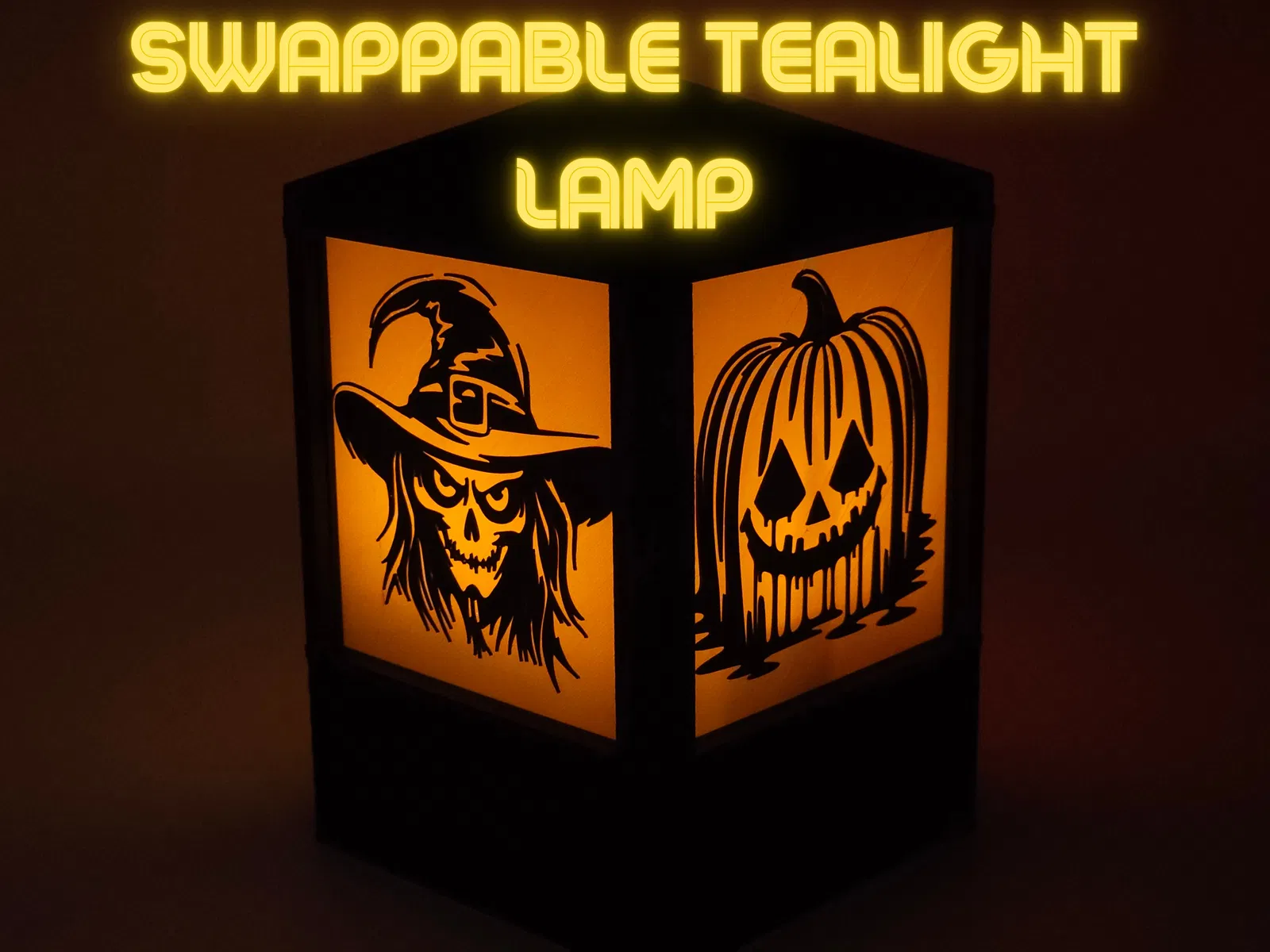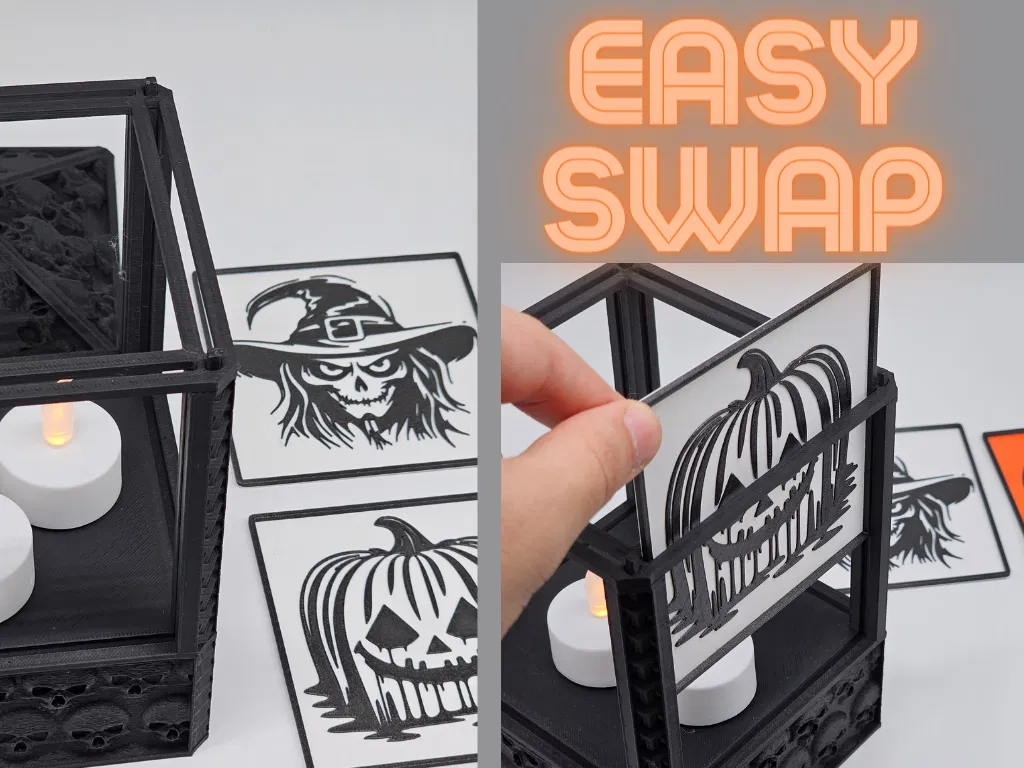Chiếc đèn Tealight Halloween tùy chỉnh này mang đến không khí ma quái với các mặt bảng có thể hoán đổi: cơ bản, vẽ sợi và lithophane. Bao gồm hướng dẫn in chi tiết và liên kết đến tệp STEP. Hoàn hảo để trang trí Halloween hoặc làm quà tặng độc đáo.