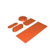 • Các mẫu tương tự được nhóm vào các tệp STL để giúp quản lý các biến thể ngày càng tăng có thể thực hiện được nhờ các tập lệnh OpenSCAD đã viết lại.